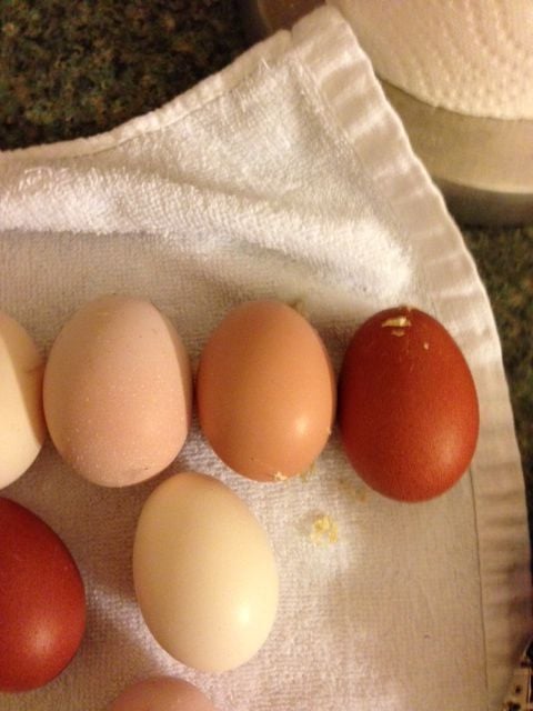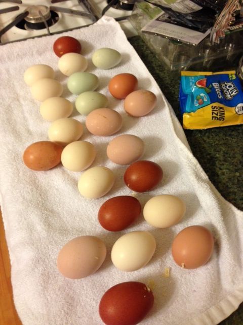 Here are some of the variety I have from the last 4 days. I notice I have a lot of white egg layers.....