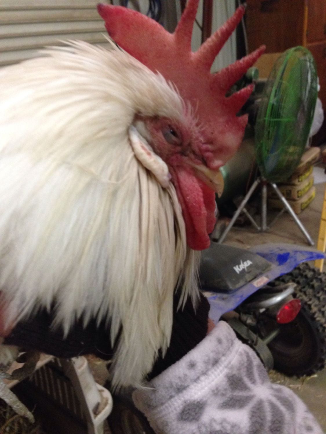 Today we found my daughters Bantam Leghorn cock dead. Last night, he looked like the picture above and we moved him inside. We believe it was from red mites. He has always been sensitive to mites, if that's possible. He would get them even when yhe others didn't and they were very hard to erradicate on him. We treated him for mites 6 days ago: dusted him with Sevin, treated with Revolution, changed his bedding and sprayed his coup with Sevin. He was holding his own this week and was eating and drinking. We were giving him Nutradrench. Yesterday, I retreated him as the second round for newly hatched mites. His poop was normal, but yesterday I purchased Ivermectin to give him as a last ditch effort.