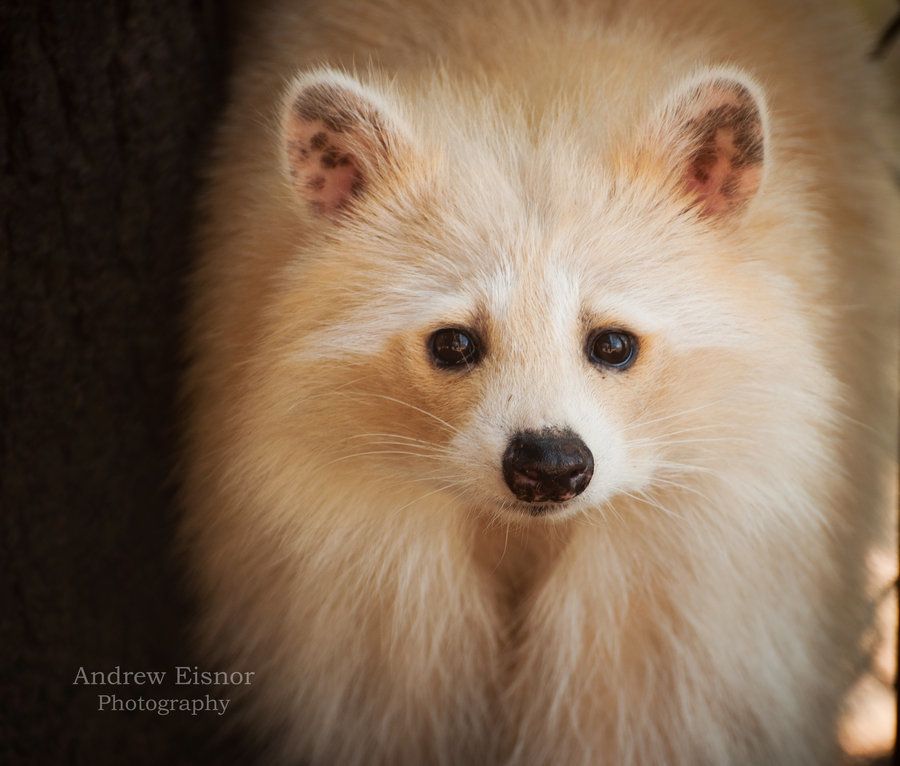 and actually, it MUST be a critter in its winter coat, rather than albino, because the nose is black -- an albino anything would have no pigment anywhere (notice the nose & eye color in the albino raccoon photo)