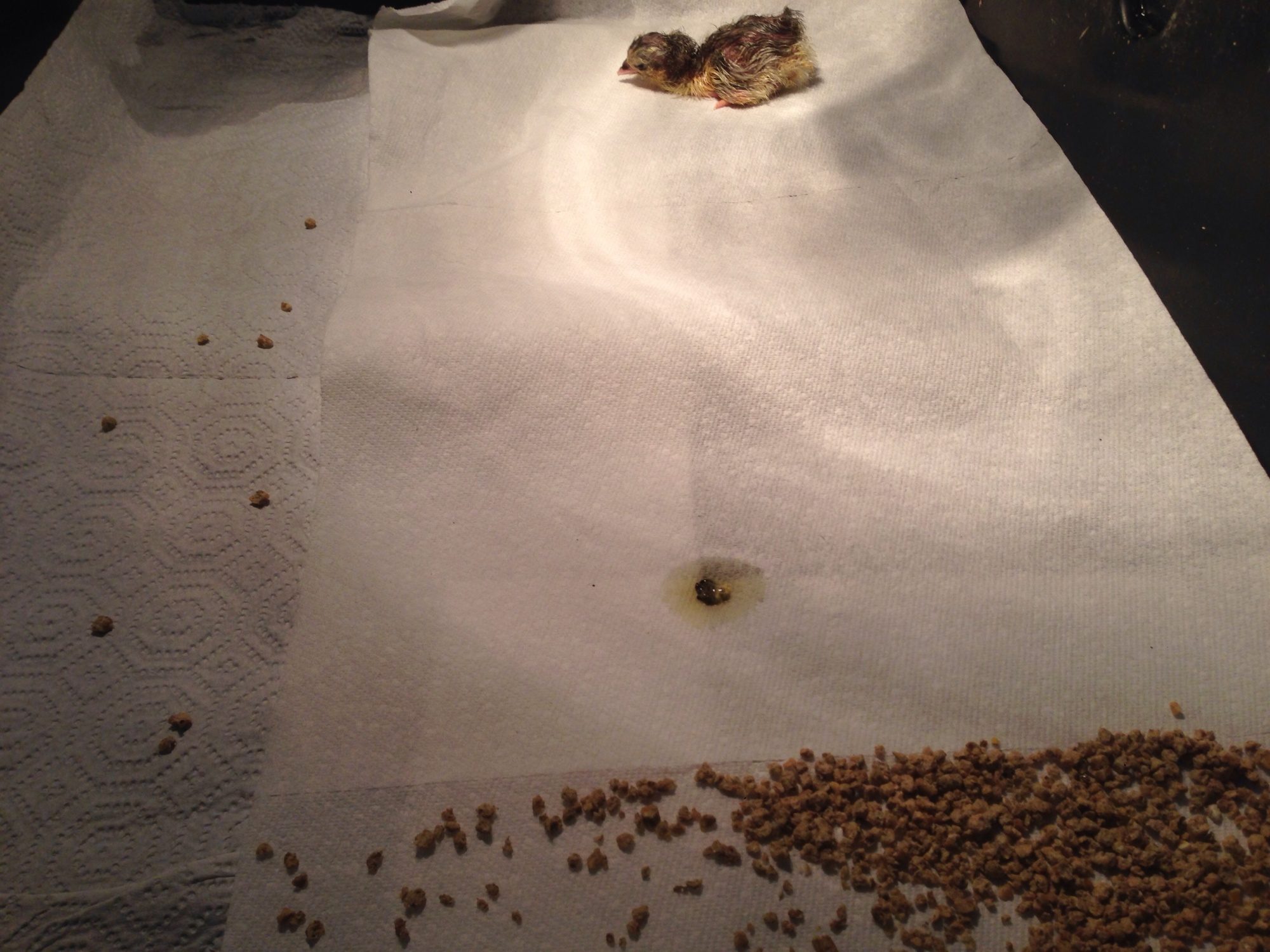 The chick is chirping but seems exhausted & wabbly. Dry but crusty. Keeps laying down. Is it ok? This is only my second hatching ever and the chick hatched over night and was perky and fluffy but wabbly.