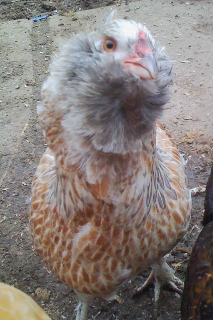 She's pretty!I have a question for all you egg color experts out there. My little EE's should start laying any day now, and I'm trying to figure out their chances of laying a colored egg. I will probably have to sell a couple of them (due to my downsizing), and I want to make sure I let people know their chances of getting a colored egg. These are the ones that I hatched from my Salmon Favorolles roo, and my hatchery EE. She (mom) laid a bright blue egg. The pullets all have pea combs (I know this isn't a guarantee of carrying the blue gene). So my understanding is that most EE's carry 1 blue egg gene, and one other color gene (brown, white). So If that EE was crossed with the SF does that mean that the pullets only have a 75% chance of laying blue? One of the girls:![]()