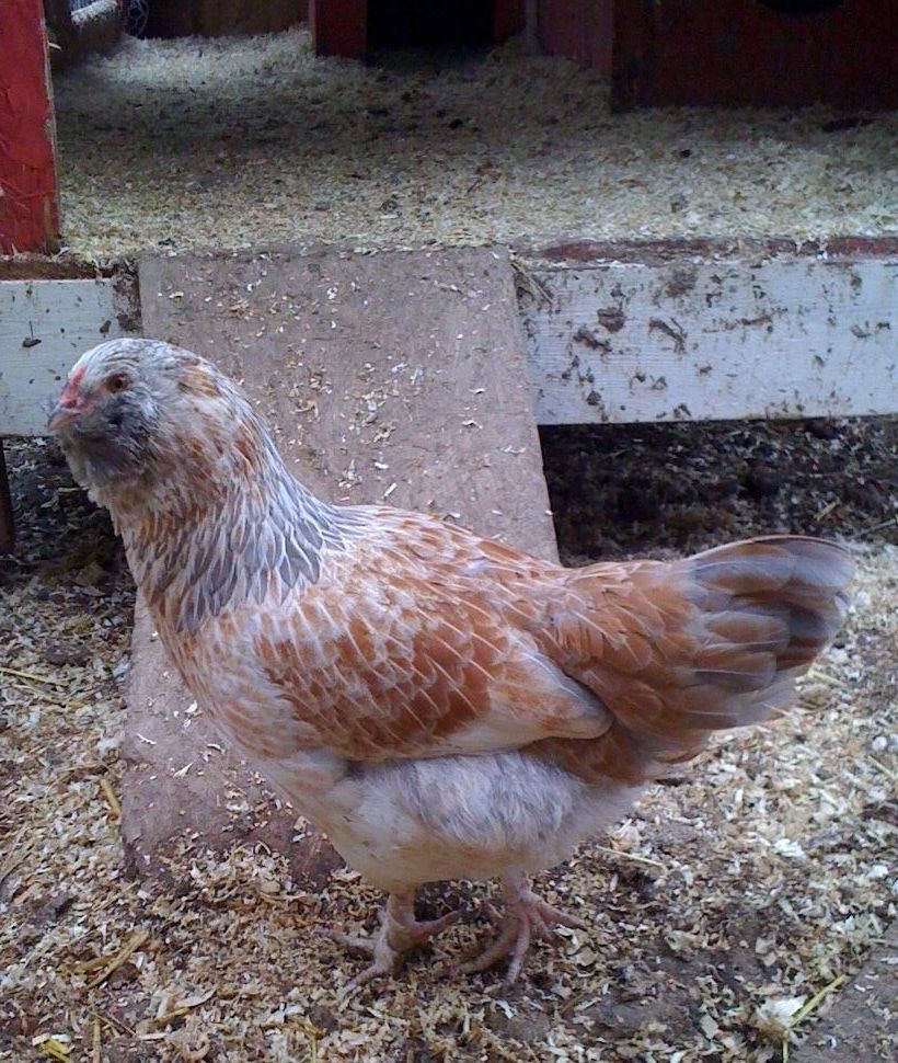 I have a question for all you egg color experts out there. My little EE's should start laying any day now, and I'm trying to figure out their chances of laying a colored egg. I will probably have to sell a couple of them (due to my downsizing), and I want to make sure I let people know their chances of getting a colored egg. These are the ones that I hatched from my Salmon Favorolles roo, and my hatchery EE. She (mom) laid a bright blue egg. The pullets all have pea combs (I know this isn't a guarantee of carrying the blue gene). So my understanding is that most EE's carry 1 blue egg gene, and one other color gene (brown, white). So If that EE was crossed with the SF does that mean that the pullets only have a 75% chance of laying blue? One of the girls: