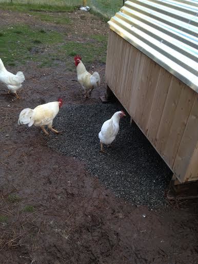 with all the rain we had plus the rain last night around the Empordanesa coop was full of mud. I decided to put down some pea gravel under and around it. hopefully the like it. I think so far so good. A larger coop is in the works