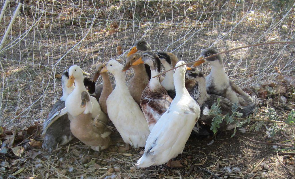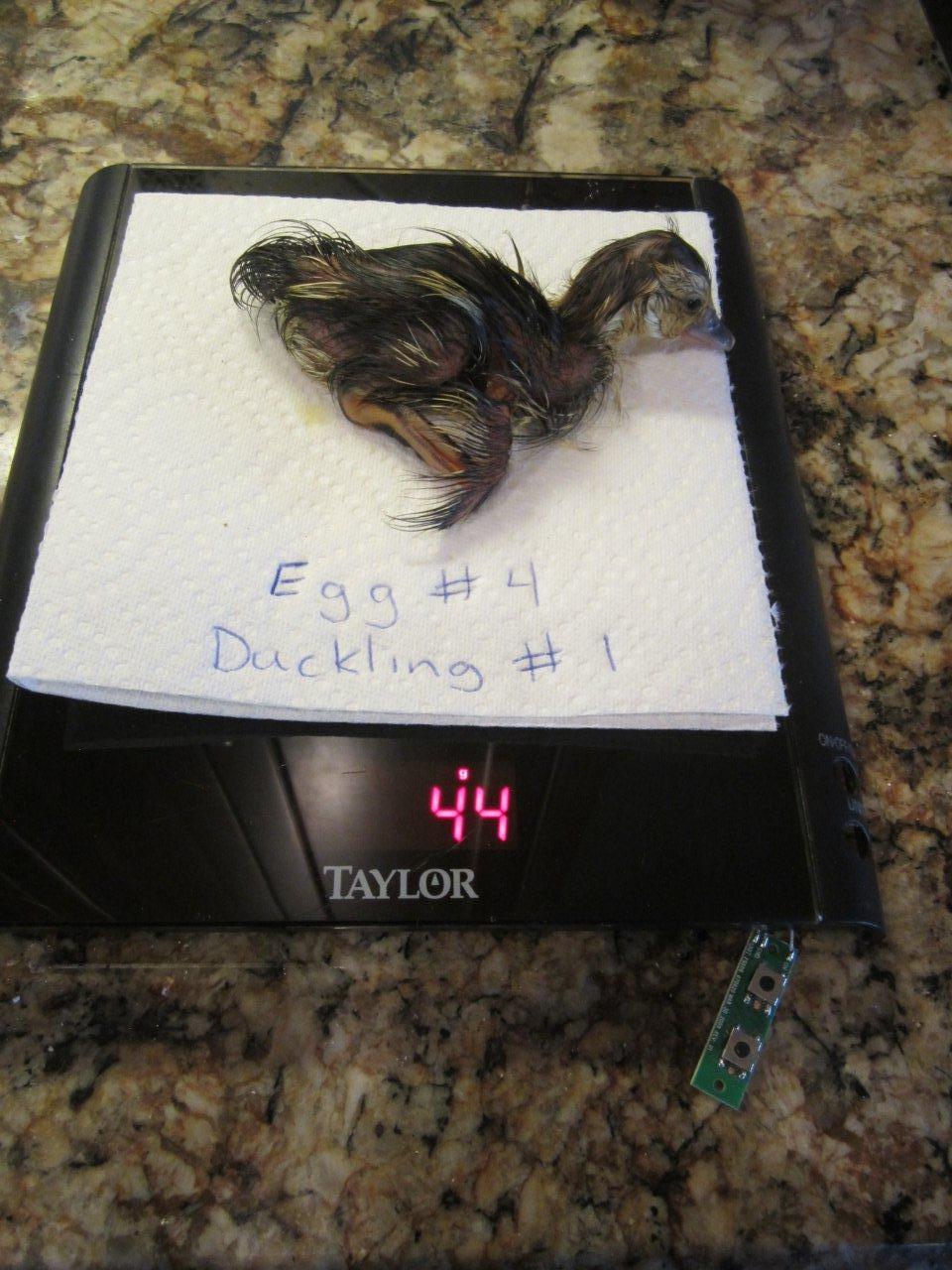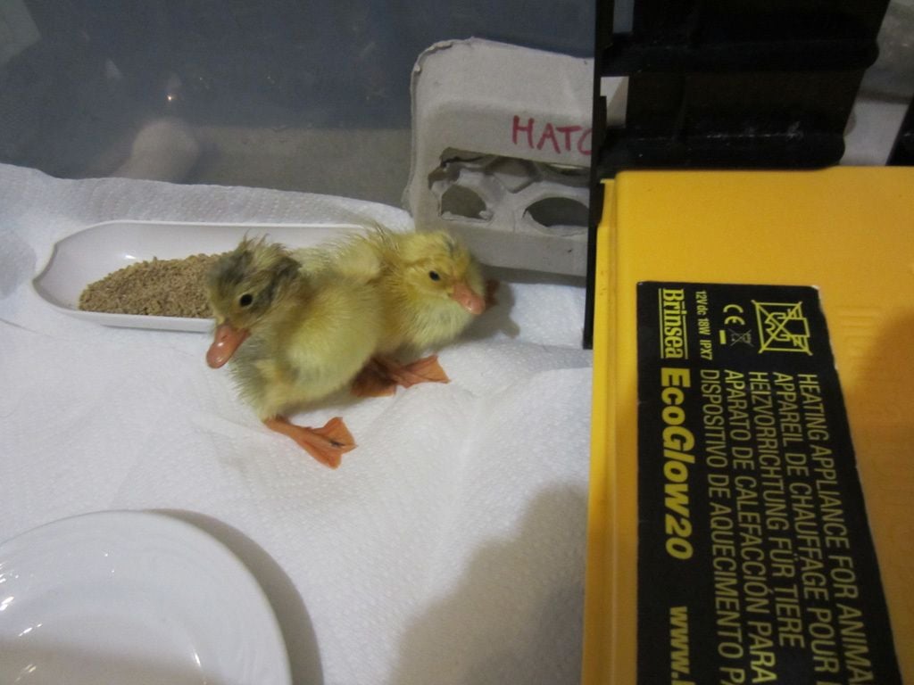 The top photo is of a batch of Pekin based hatchery ducks from Amy Beth. The first duckling is a wild Mallard that the Egg Farmer (Jeremy) found after a pasture was mowed disturbing the Mom and leaving a nest of eggs! The last picture is of the just hatched ducklings that grew up to become the big ones in the first picture.