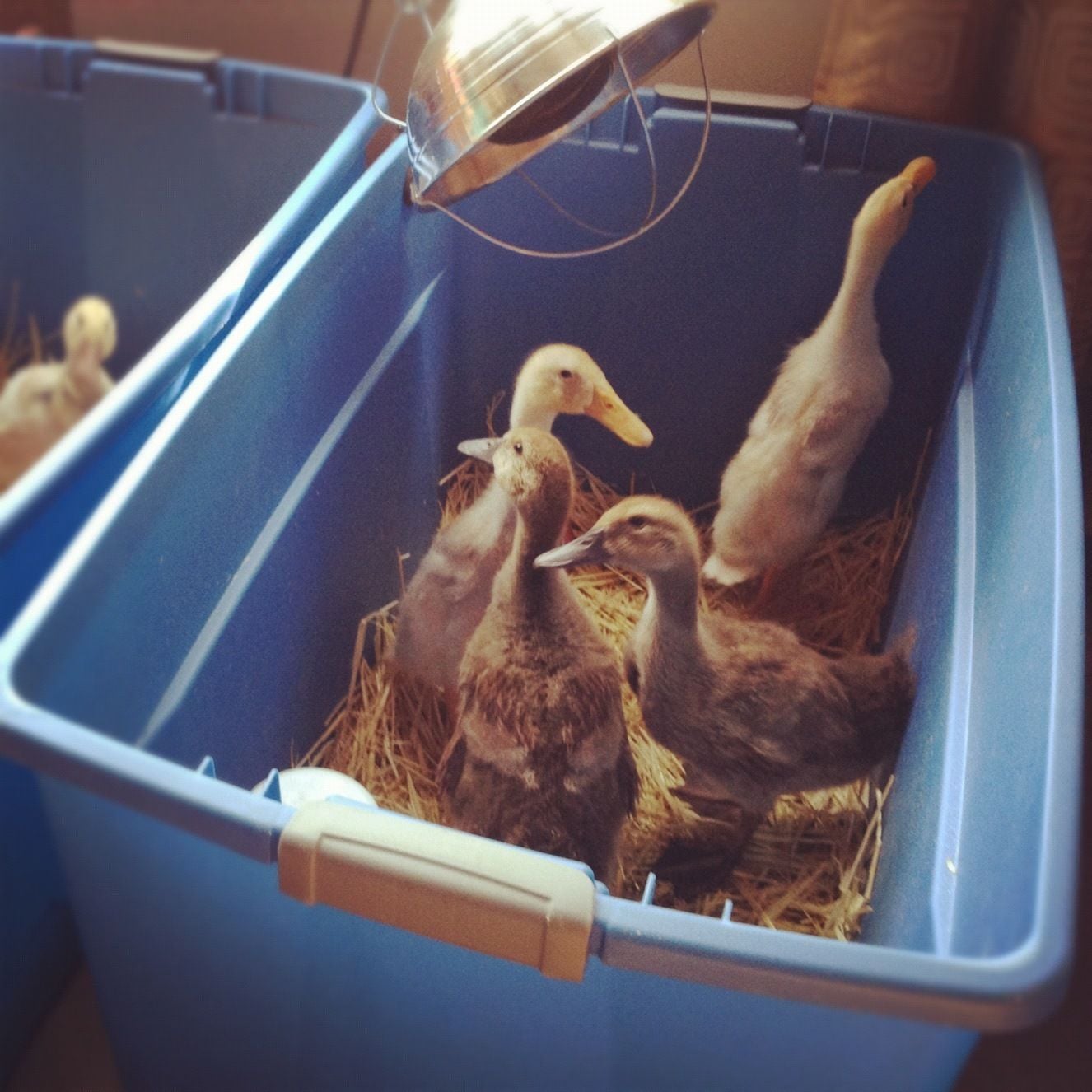 My first set of ducks (we staggered them by 3 weeks) are 18 weeks old. I guess they start laying between 20-24 weeks. I don't have any nest boxes in their coop. Ahhhh! Do ANY of you have ducks for laying? I'd rather not use wood lay boxes (ducks squirt poop everywhere- that won't be fun to clean). Do you guys have any creative ideas that you have used for lay boxes for your ducks or even large chickens?