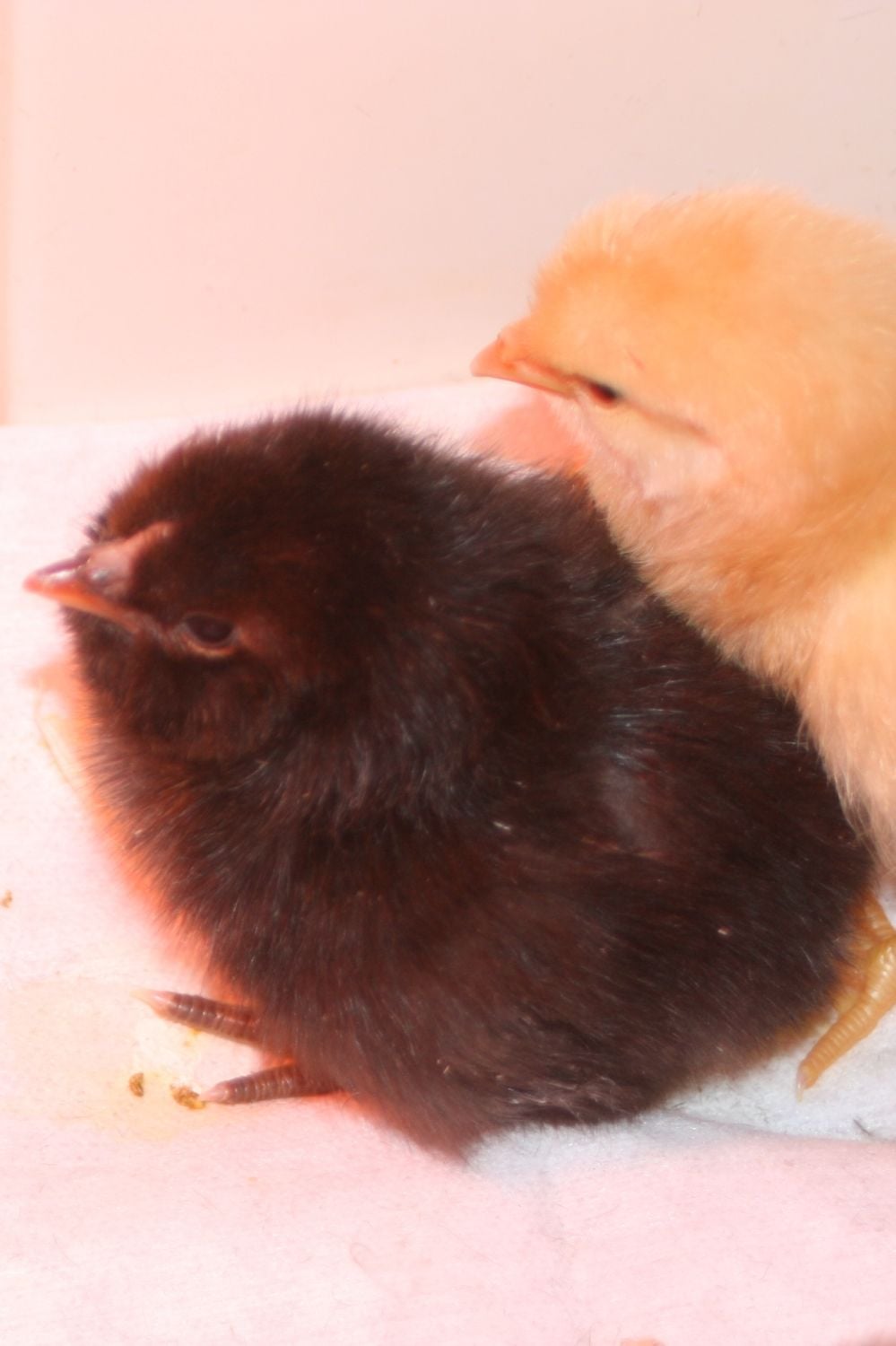 My current hatch is done as of this morning.. 12 hatched out of 18. One pipped but died before it even started to zip. It was the largest of the BCM eggs. Chick was very large and a bit mushy, but seemed to have absorbed all the yolk. It's head was tucked under the right wing and the egg tooth was barely visible. Another (not a Marans) was not quite as far along and had not absorbed all the yolk when it died. It has not pipped. Ended up with 3 very light colored chicks, 2 bluish and 1 black from unidentified brown eggsand 6 Clean legged BCM. I am using the "Modified heat plate brooder" and I have to say I really like it! I didn't have anyway to make the tapered legs so I am just using 3 stacked plastic cups like they serve drawn butter in at Red Lobster, They are turned upside down and placed at the 2 corners of the highest end. The other end is on the floor. The heating pad is long enough that it hangs over the ends so no draft. The little things seem very comfortable with it and I may switch to it as my primary brooder.