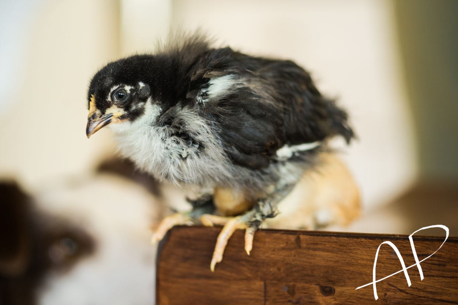 They came inside for a few minutes, and the little Buff Polish was cold and trying to cuddle under the Black Copper Marans. She was literally underneath her big sister, which you can see in these pictures.