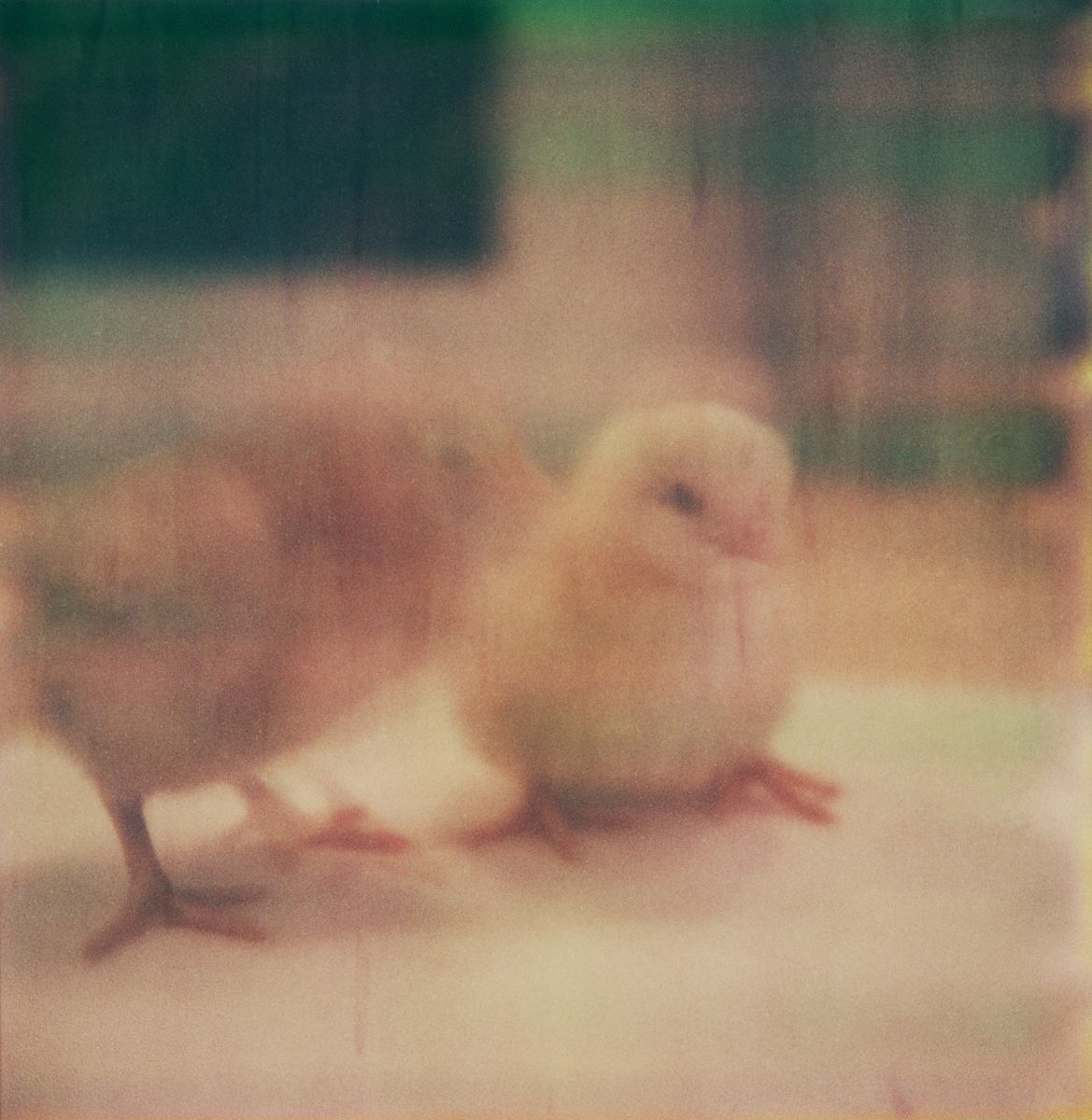 holding off on names for now, since i don't know genders (except for the cream legbar) -- but here's a polaroid of the two baby basques: