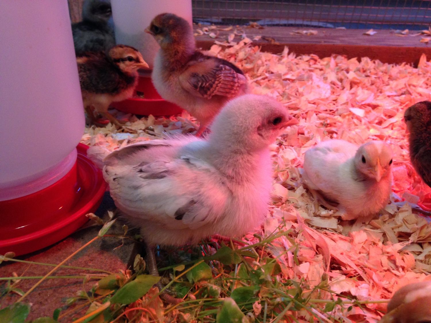 I think one of my near 3 week old Buff Orps has been traumatized by the move to the garage and the introduction of the new chicks.