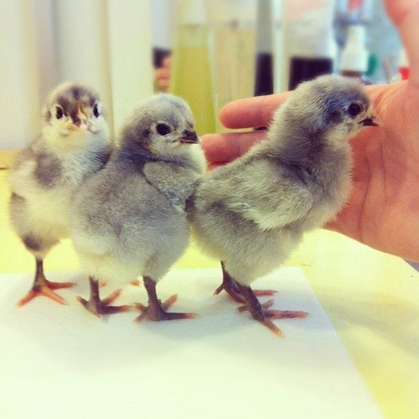 funny, i just went down to check on them and found the little girls outside the x-pen but two of the big girls (the cuckoo marans) INSIDE the x-pen! got them out & adjusted the height, now everyone's settling down for a siesta nap... will see what they do next.