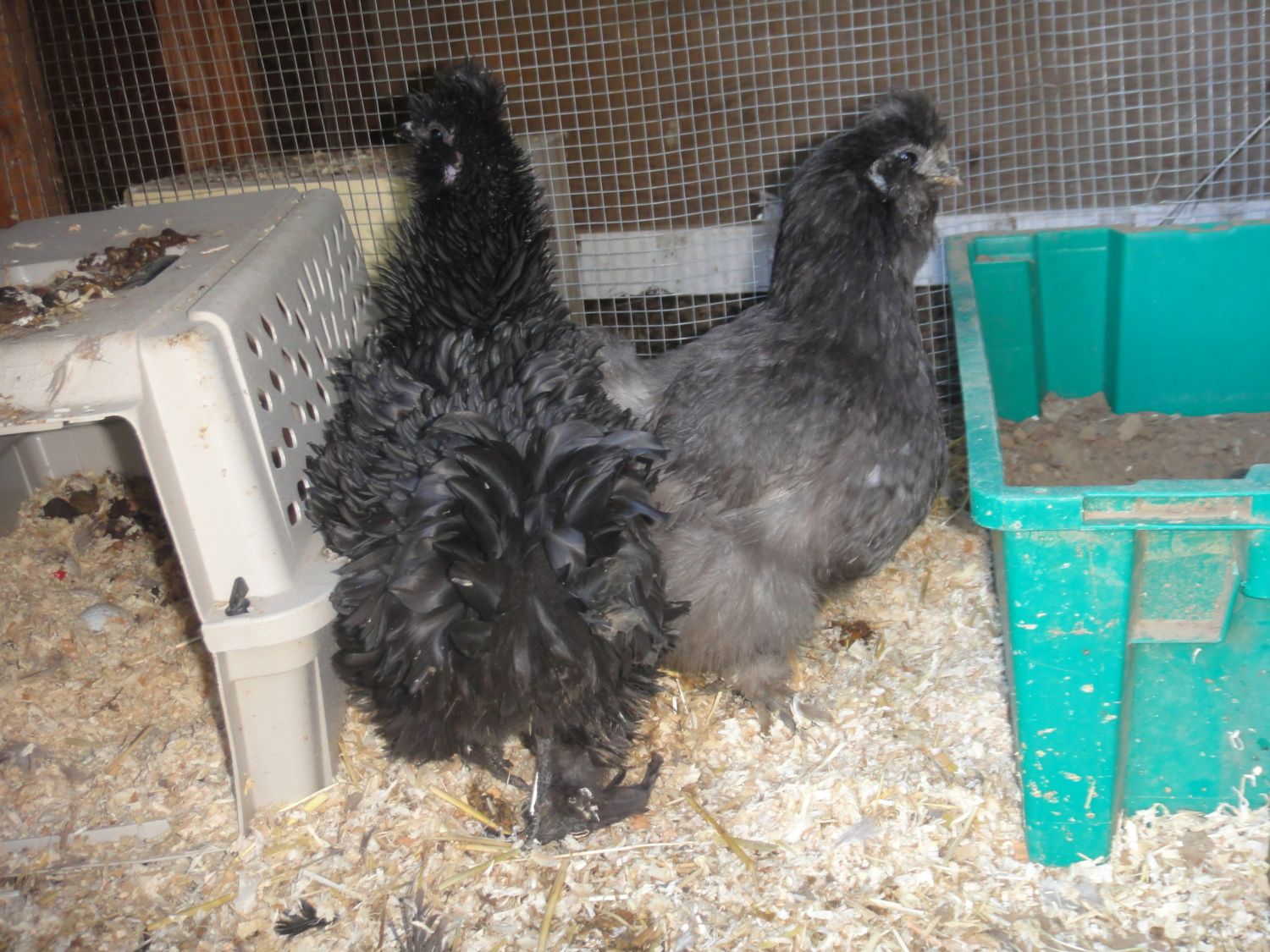 Here are my two rescue girls Gracie Bell and Julie: I think they are both silkie cochin crosses.