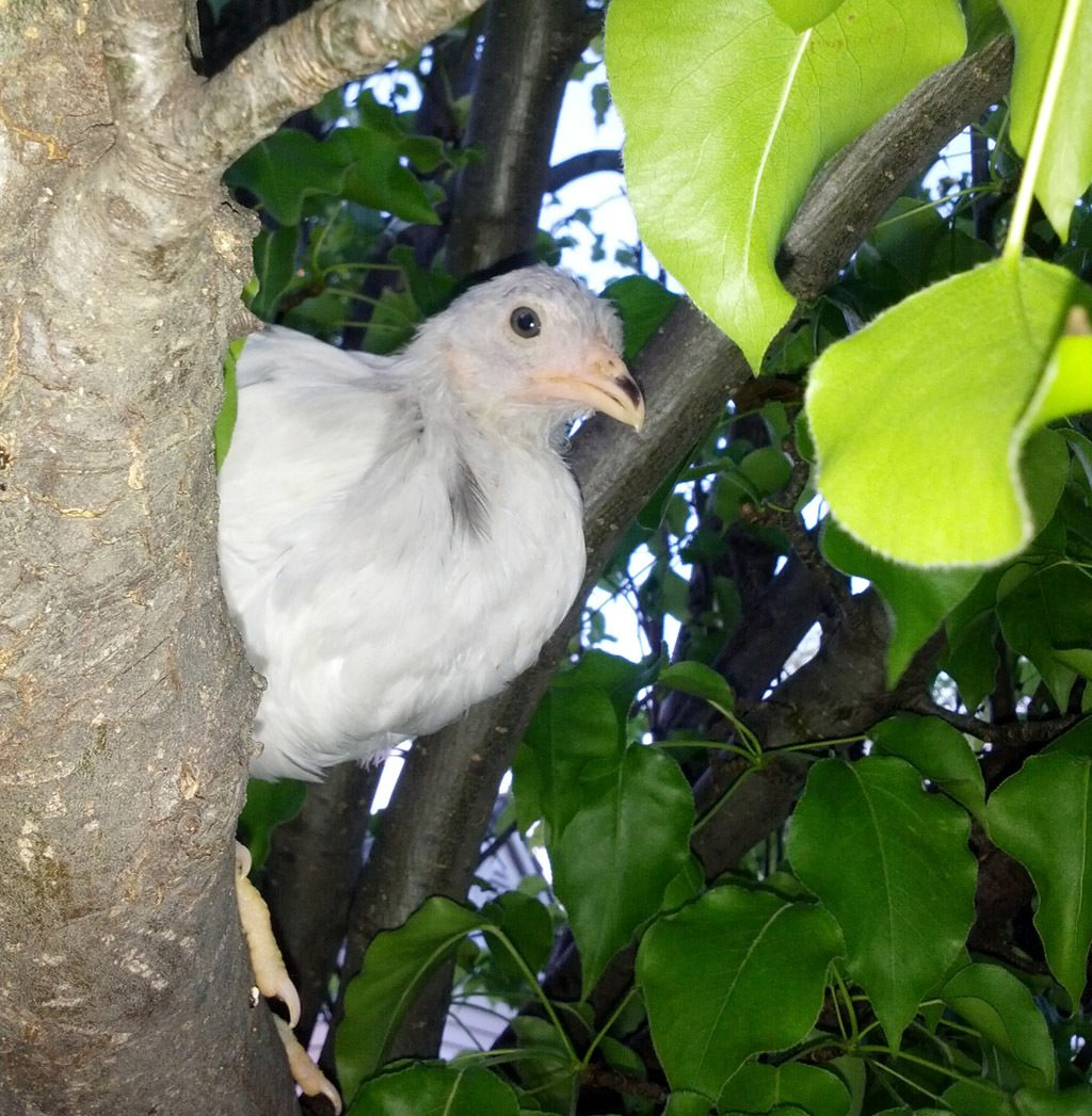 Speaking of chickens being good fliers...I accidentally locked them out of the coop one night and found my Splash Andalusian 12 feet up in a tree!