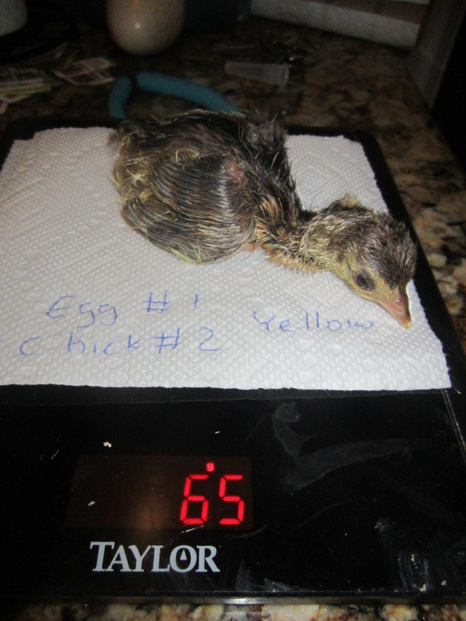 I decided to do an experiment with the first two pea eggs of the season... Both eggs were weighed the day they were laid, the day they were set under the hen and then on day 7, 14, 21 and 24. By day 24, #1 had lost 18.7% of it's just laid weight, 16% since it was set and #2 was set on the day it was laid, so it's lost 15.7%. Both eggs pipped internally on day 25 (yesterday) and today, day 26 both have pipped externally. Depending on how they hatch I will use this weight loss data when I set the next 10 in the bator.