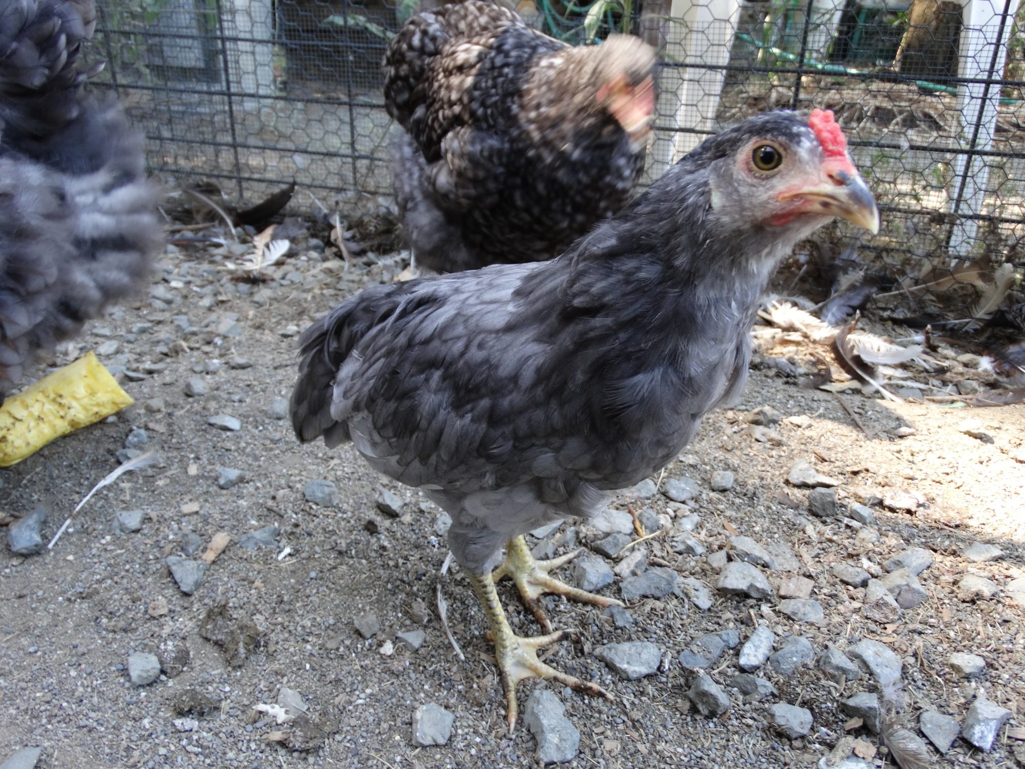 Peek-a-boo! I'm a UofA Blue roo! Here's one of my sister hatchlings... and here's all 3 colors together (splash cockerel - blue pullet - black pullet)