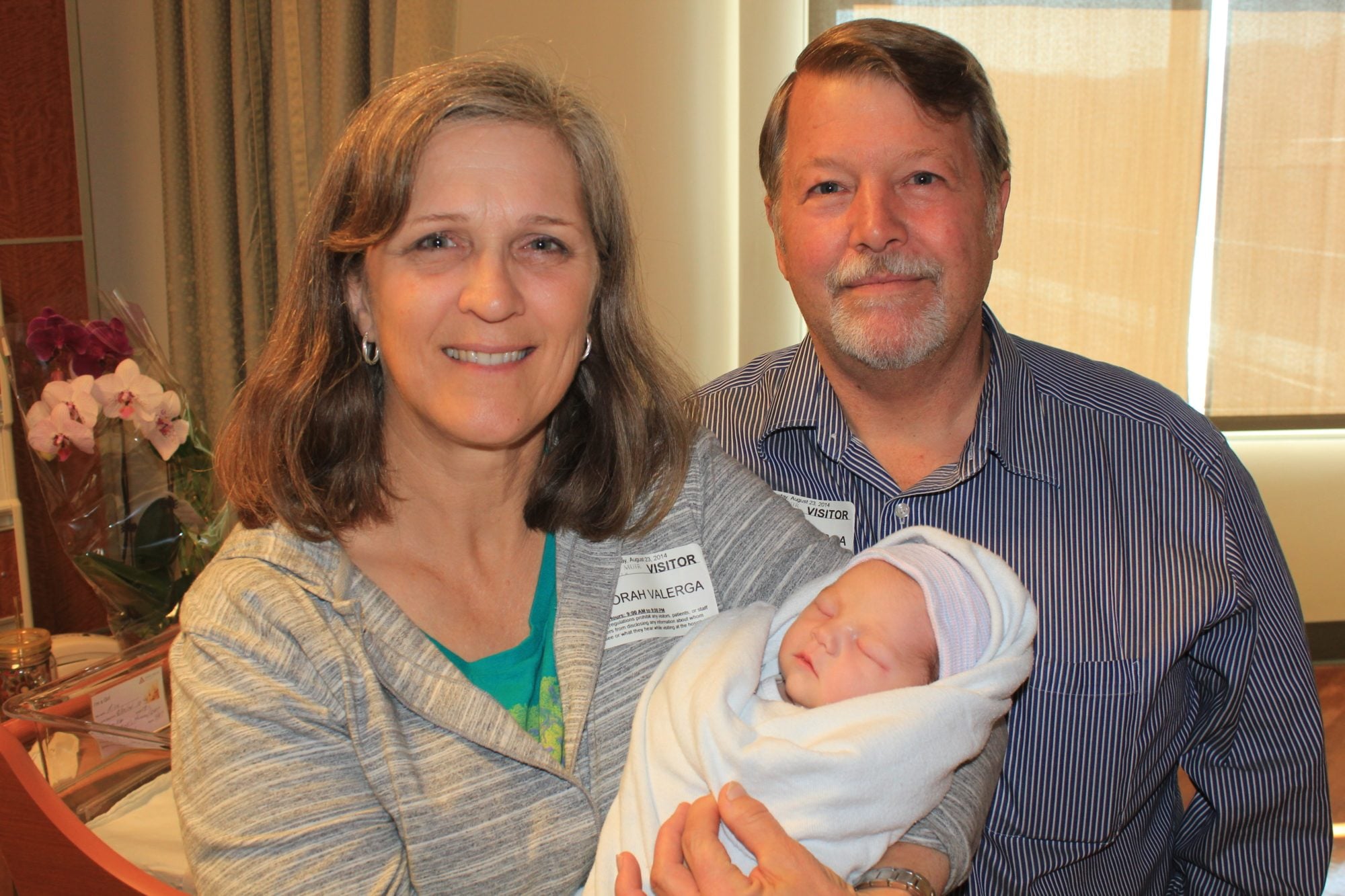 And here are the proud grandparents with our first pic with the little darling!