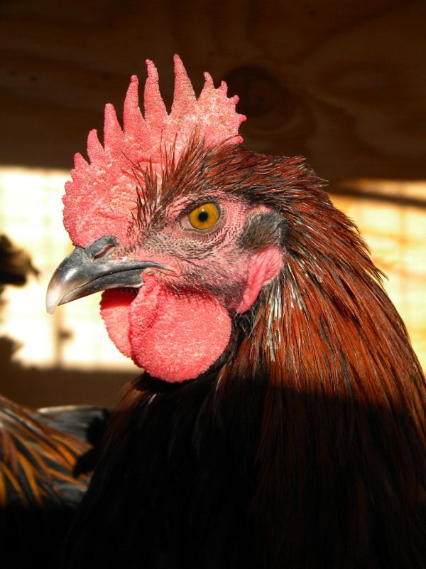 Since we're all posting pictures of black chickens...here's Sabrina, my mom's chicken. 5.5 months old, looks boyish in the face but those saddle feathers are round as can be!