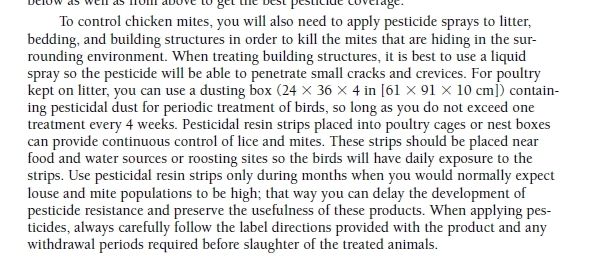 used for mite and louse control. If you rotate the type of pesticide that you use, you