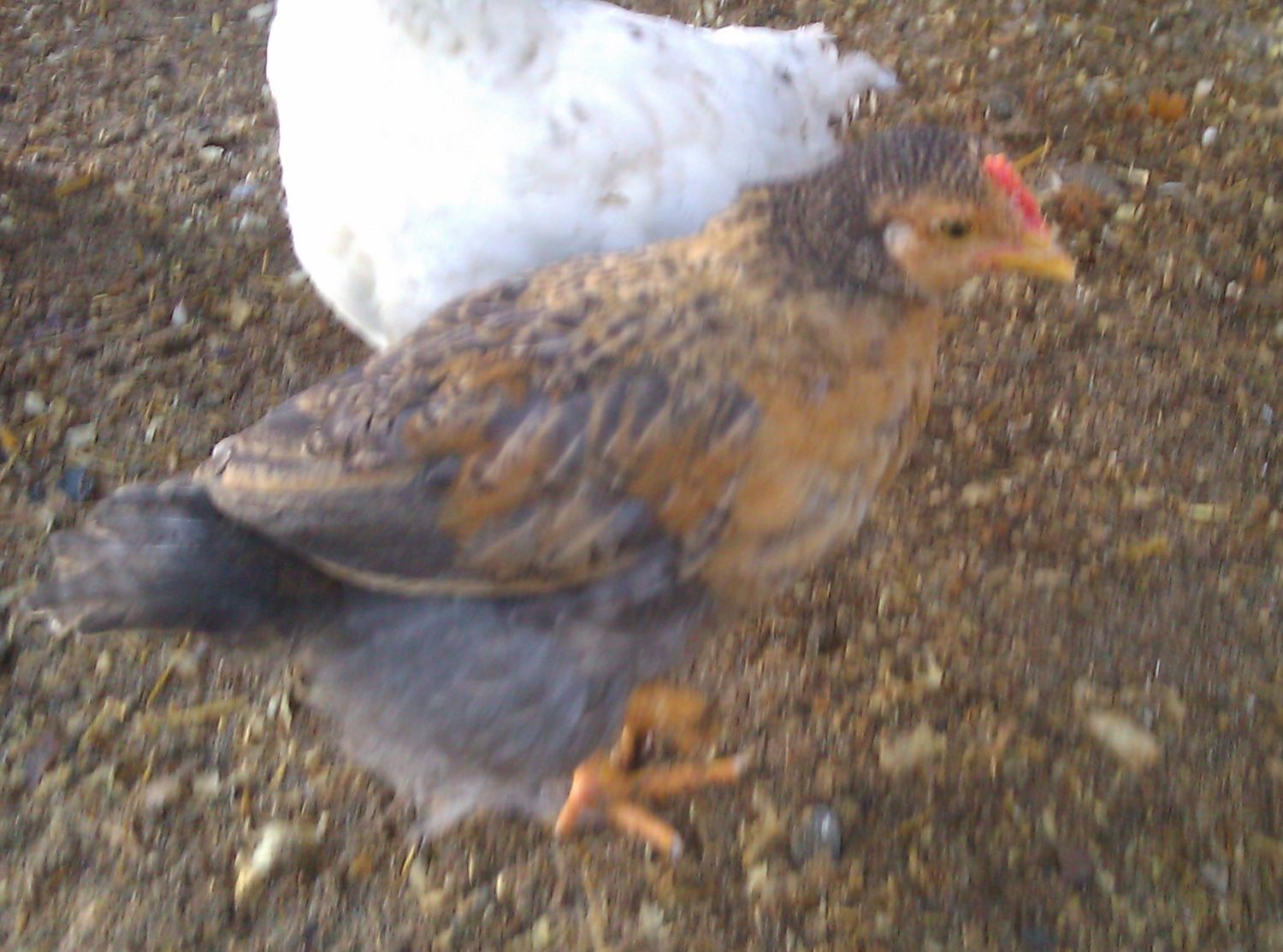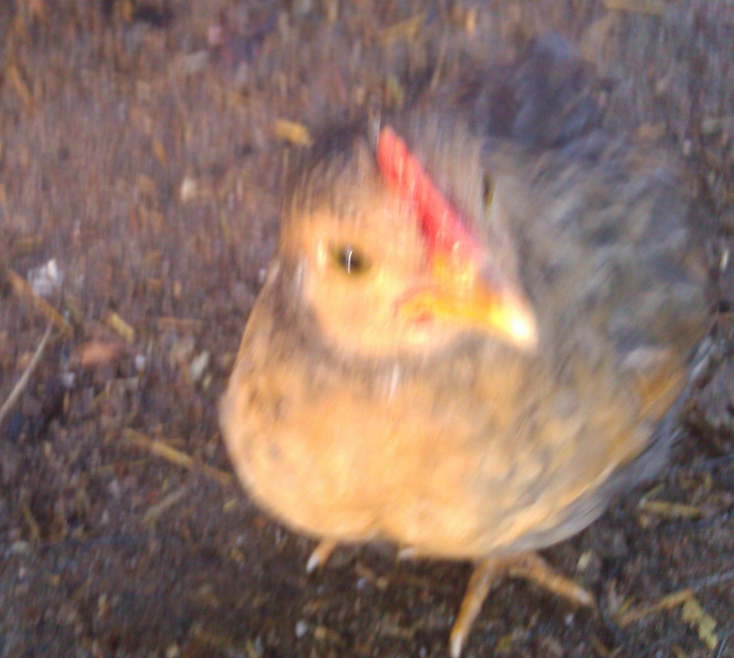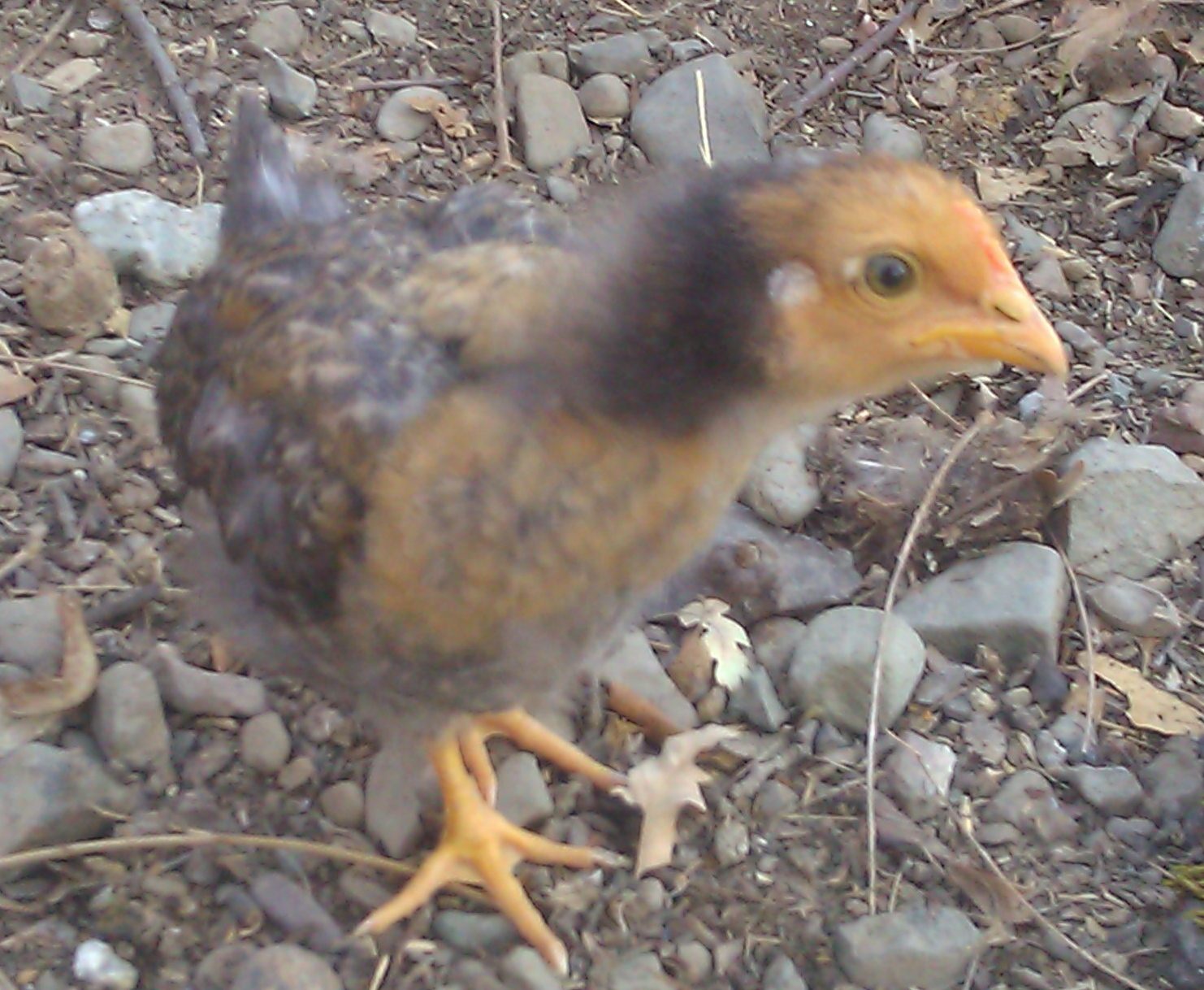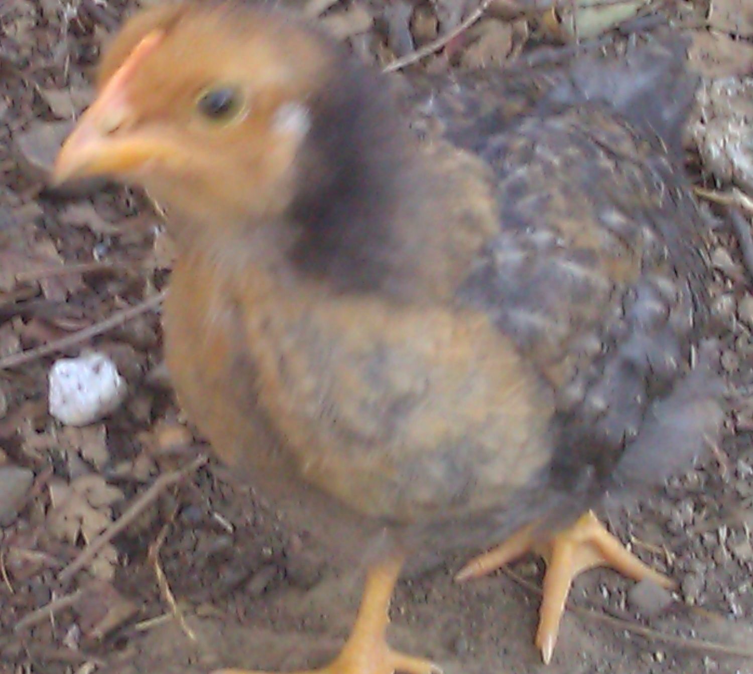 I am confused. Why would this cross have created this chick? Red over cuckoo = black boys with head spot and girls that are solid black or in this case...I thought...had red faces and heads. I will repost this in the Sex Link thread but I prefer the company of the people on this thread...uncharted waters over there