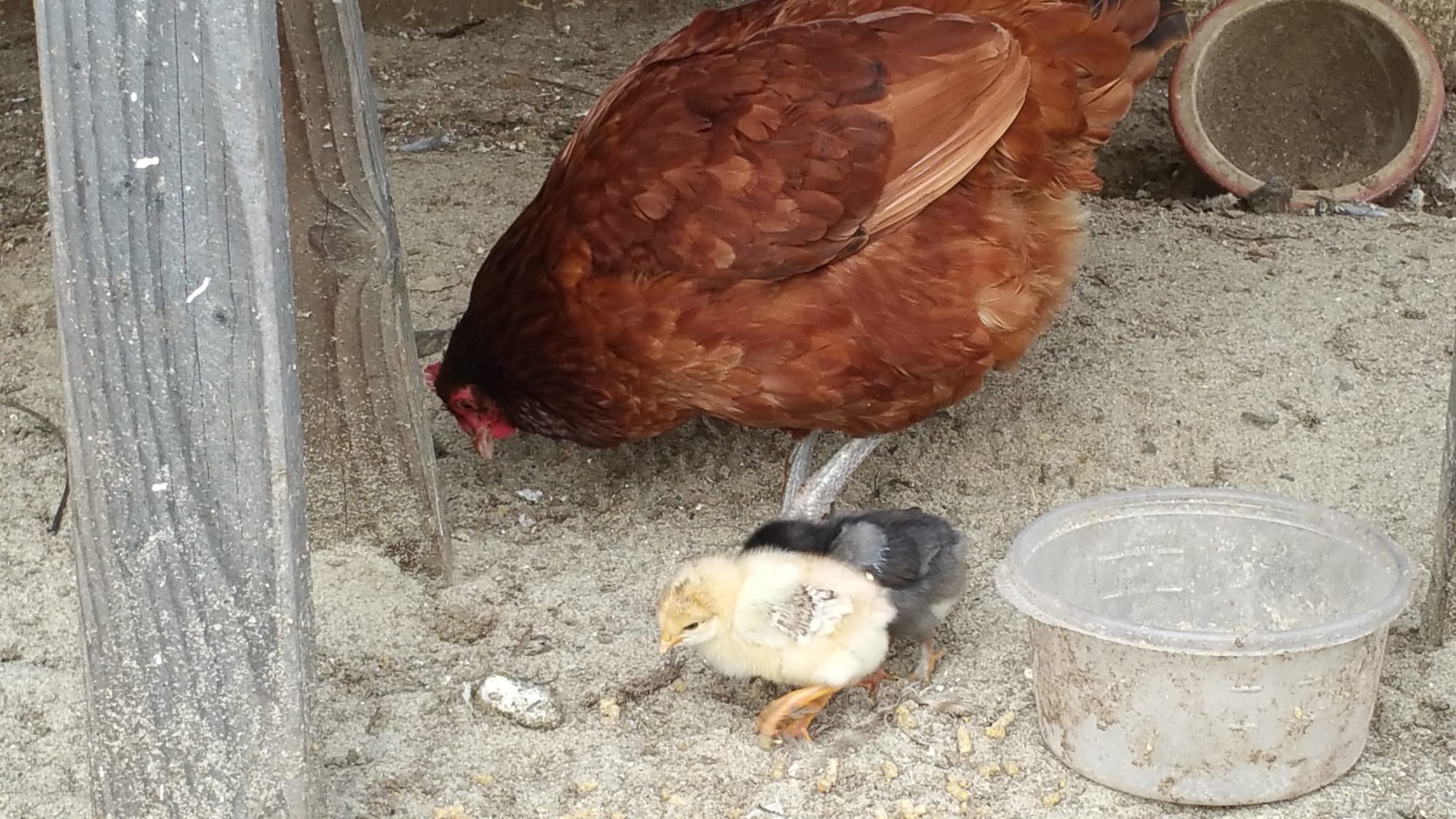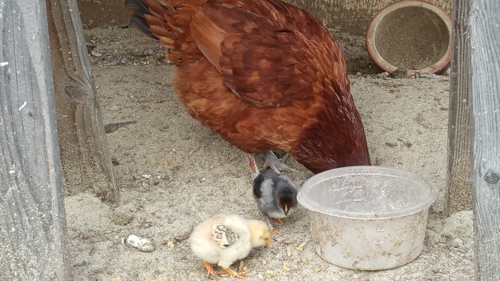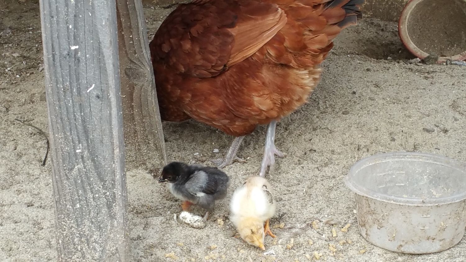 Then we have Gracie with their ^^^ hatchmate This is Abel this morning after his first night with the chicks