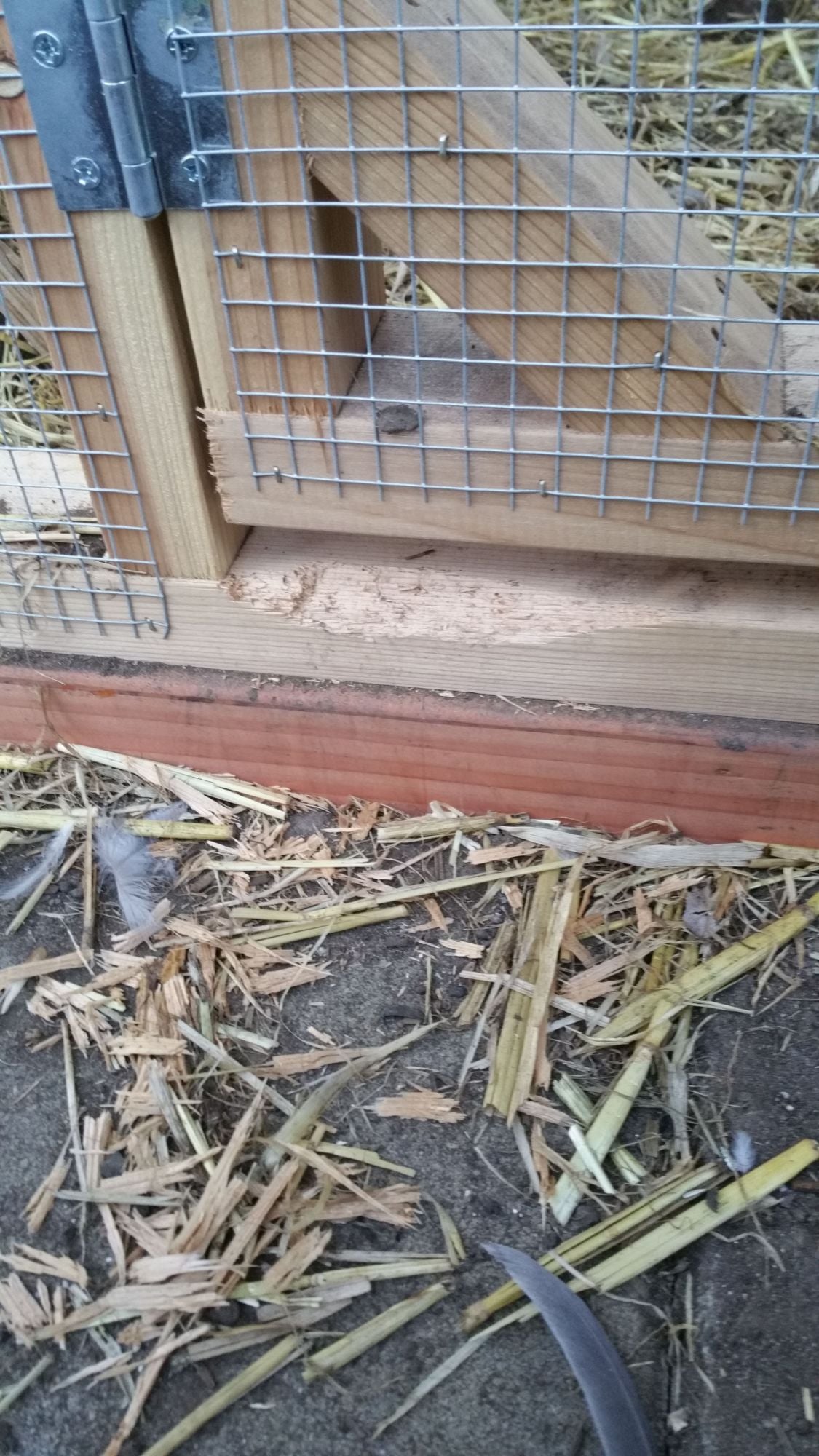 Well something nasty attempted to get into my coop last night. Guess I will be covering the door frame/edges in hardware cloth today.