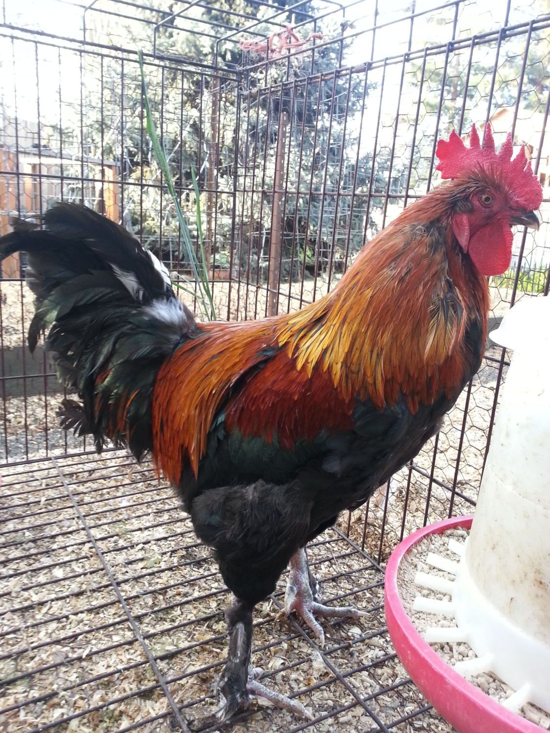 His crow is as shown but he still has is bass-voiced clucks. Awesome...