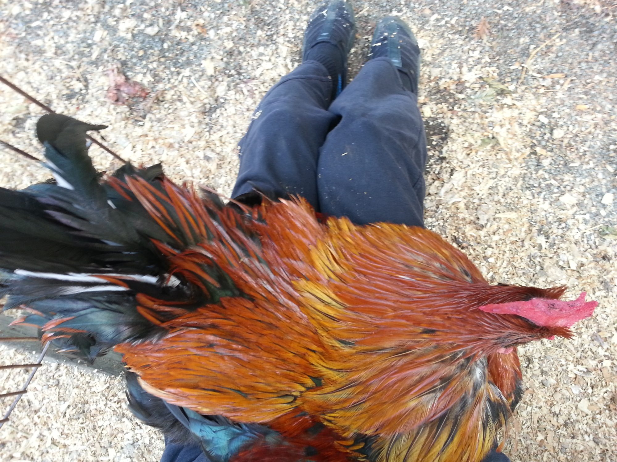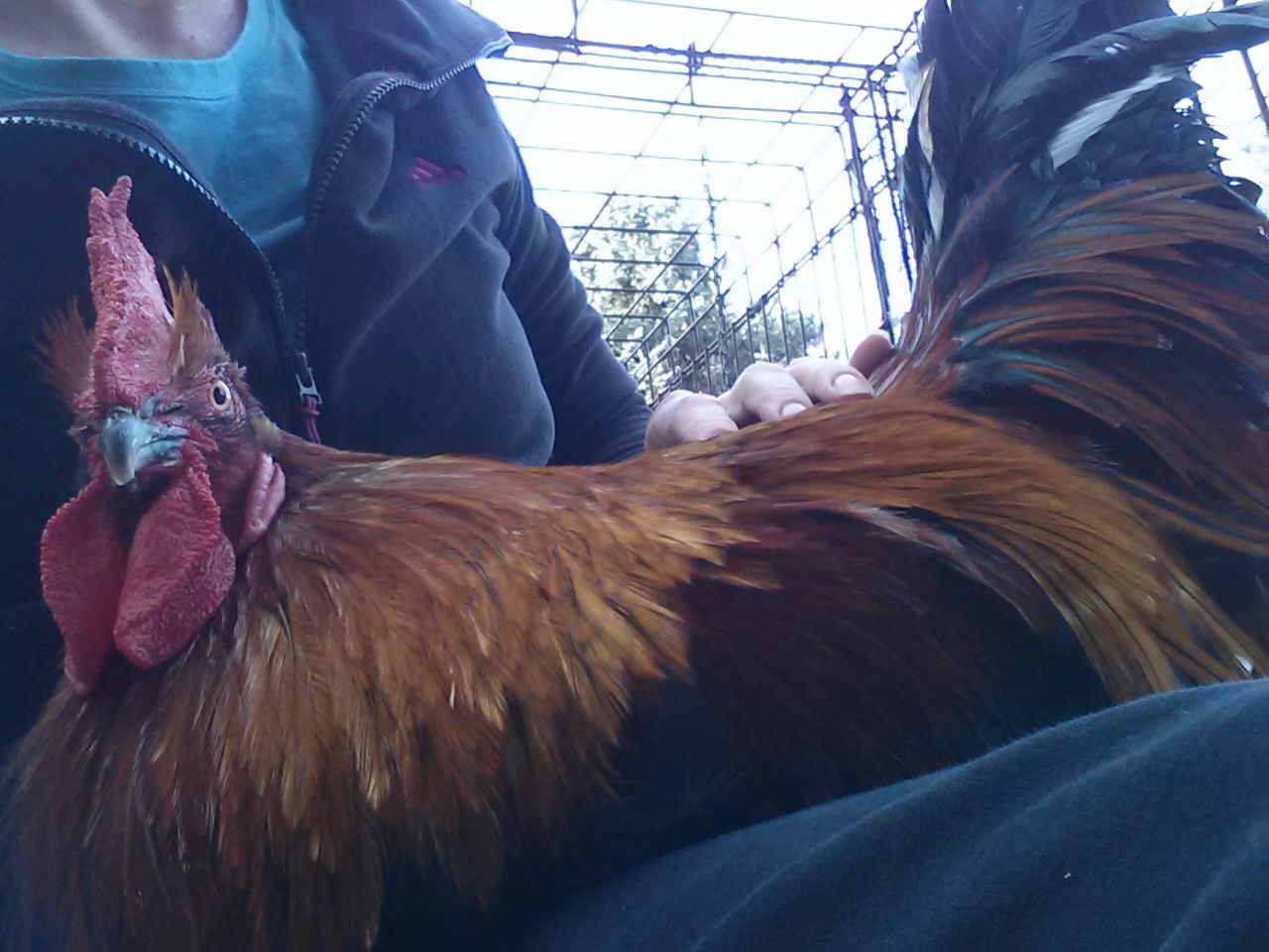 and my new cuddle-bug, Jean-Luc, a french black copper marans roo (thank you again @KernH )