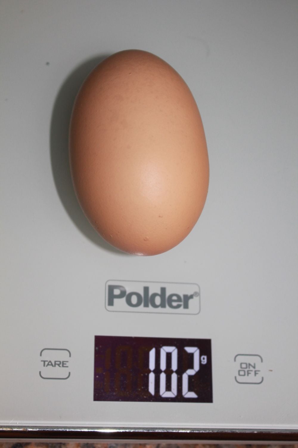 I had to share a pic of the largest egg that I've ever gotten from my chickens. I had at least 1 girl working overtime last week. I collected 3 big double yolk eggs but 1 of them was 102 grams! The other 2 were 81+ g each.