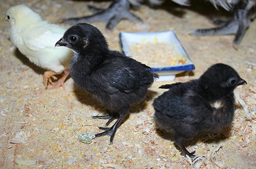 Oh, the dark chicks are the Nankins, the light colored ones are Ko Shamo, and in the photos they are about 10 days old.