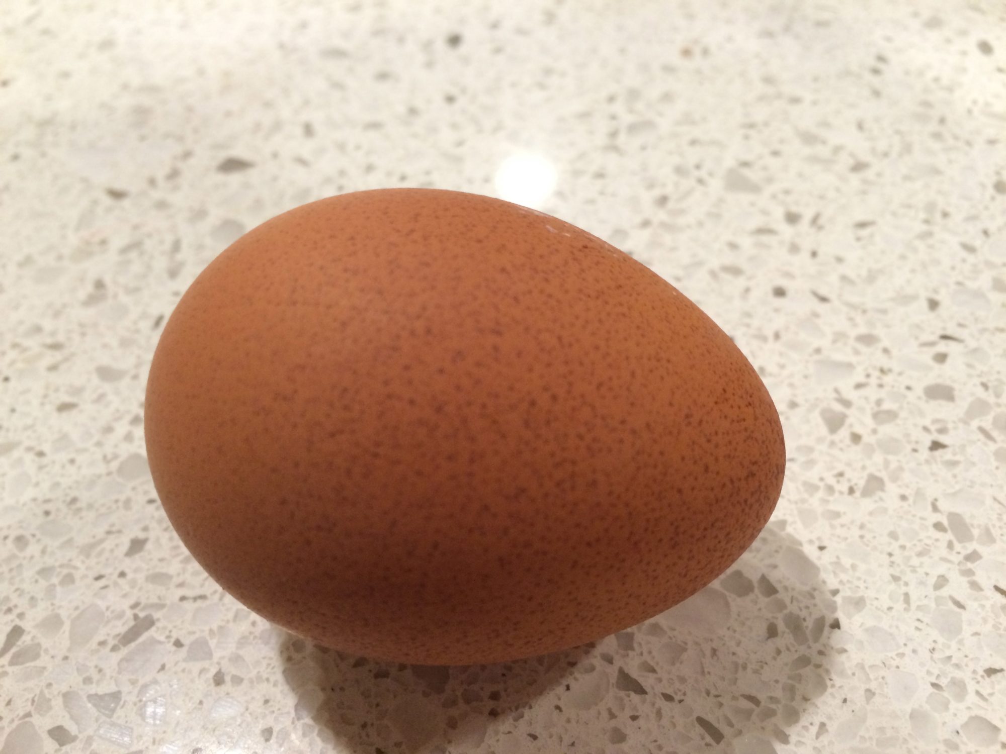 This Welsumer is about 56 weeks old and laid her first egg today. She started an egg song in the fall, but stopped when the days grew shorter. Recently she started the egg song again, and then began squatting this past week.