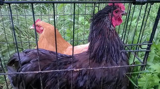 Broke out my teeny little quarantine tractor between storm bursts, my new (still growing in his adult plumage, so not looking his best) Orpington rooster was glad to get some greens.