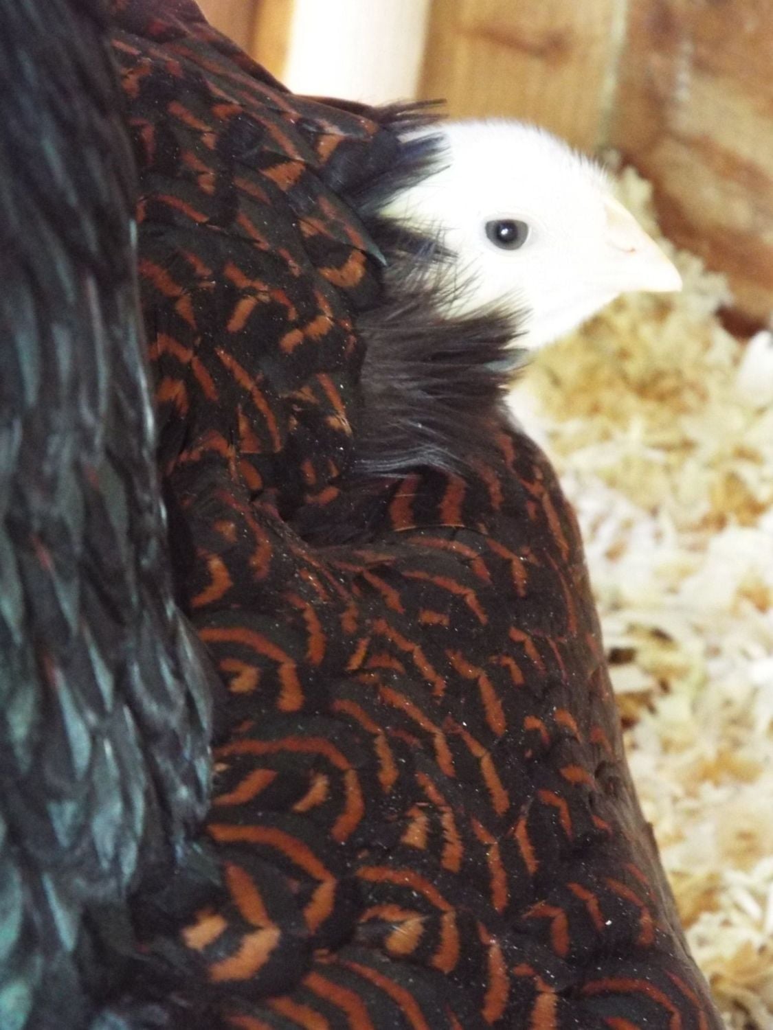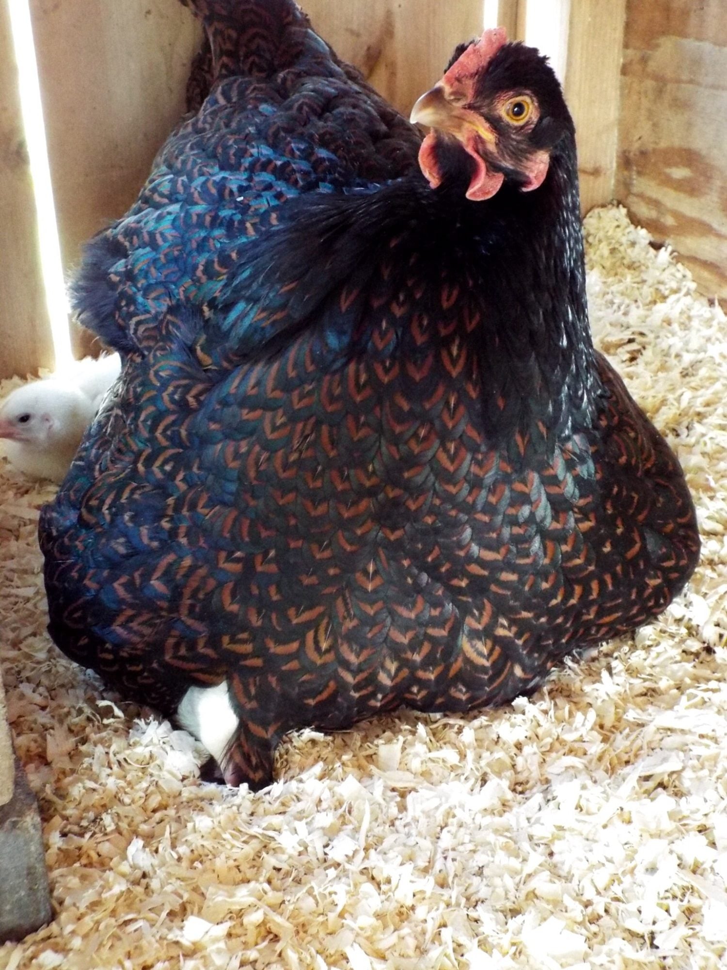 I gave my broody 5 cornish cross chicks. she is so happy to have chicks, but it wil be interesting to see how she does raising these little yet soon to be big "monsters".