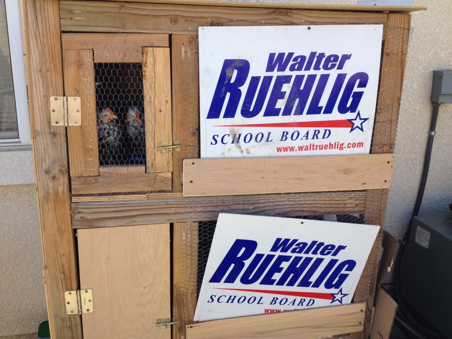 The scrap built outside brooder/grower cages Excuse the old campaign signs the wind is pretty bad still The bachelor pad The Sorority house. Going to cut a window in the girls door when the wind dies down 90% scraps. (A few cheap lenolium stick tiles on the floor and fasteners) The top is open and its under the eaves so it wont get too hot during the last few week they will have to be in it. My saw skills need lots of work but fortunately it didnt have to look pretty. They shouldn't have to be here more than 6 weeks before transitioning to a perm pen;