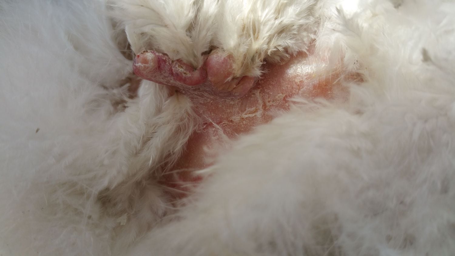 This is on the side of a hen's body, under the wing.