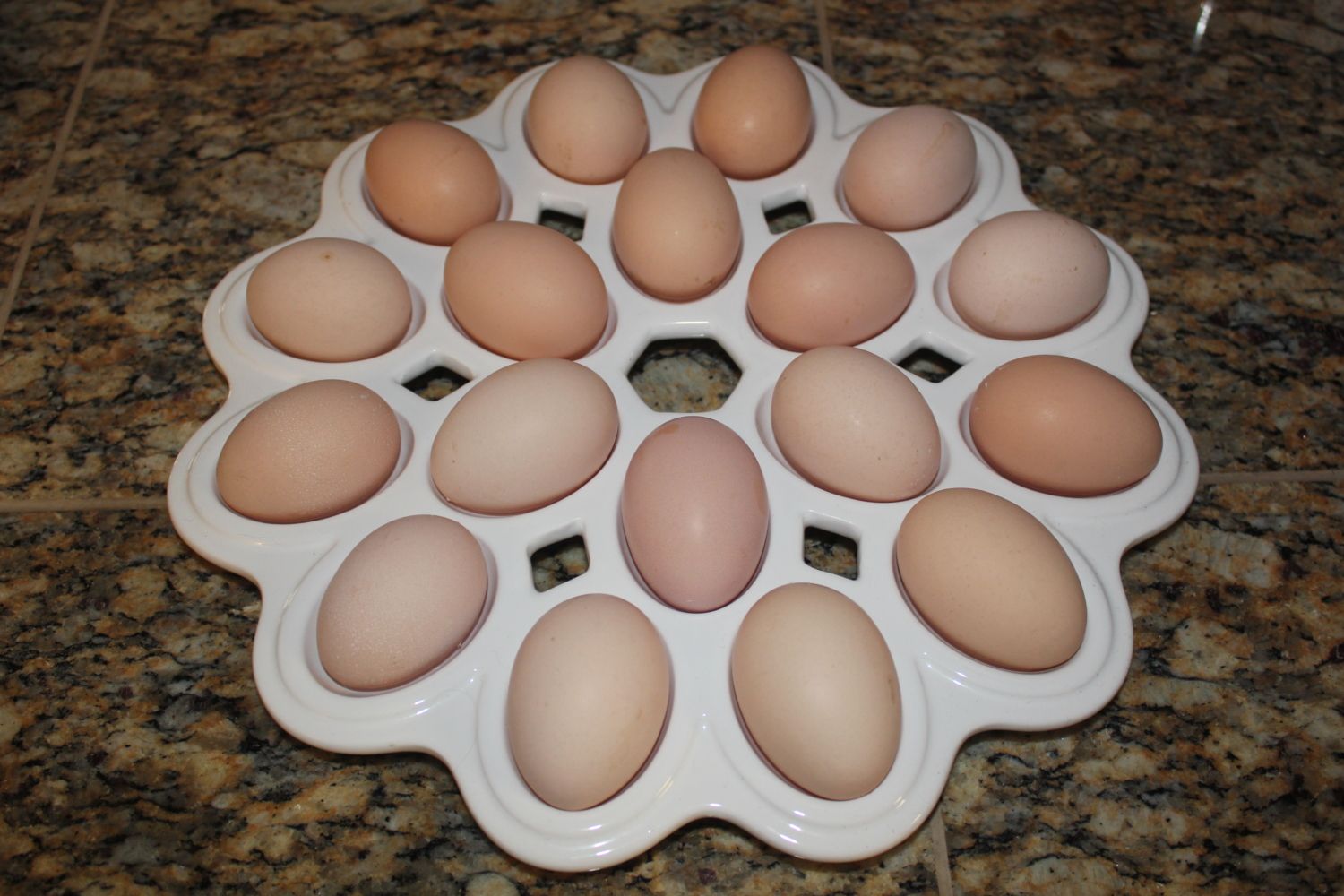 I would say the pitas lay a little darker than a cream colored egg on occasion not as brown as say a RIR or other Heritage breeds but the shades vary. They lay decent sized eggs not as large as my delawares or my cream legbars but if it wasnt for the color difference I wouldnt be able to tell between the pitas and the buff orps eggs. Obviously new pullets eggs are smaller but their egg size increases pretty rapidly.