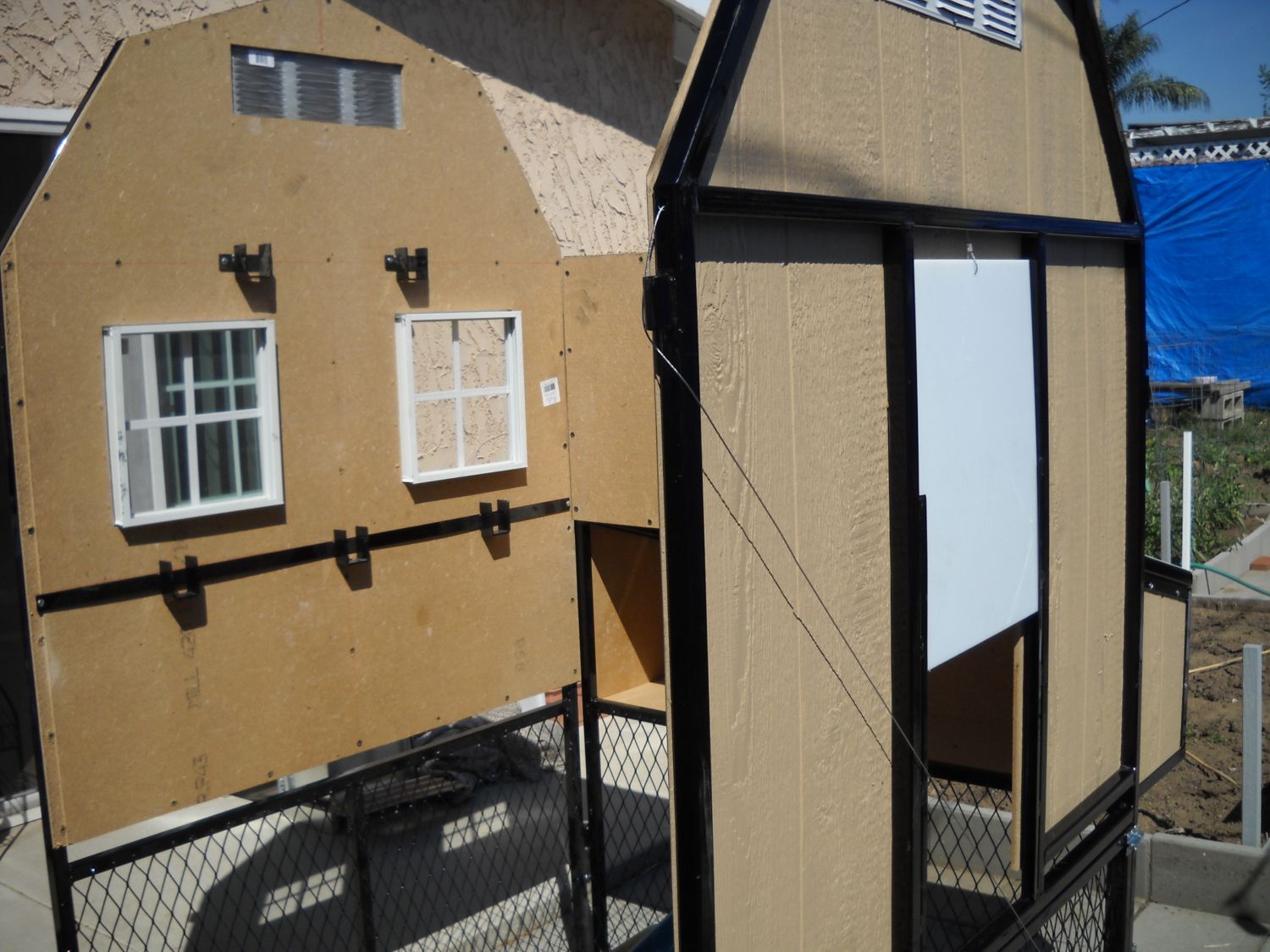 The new Barn Coop has a rounded-edge roost pole under each window and the two LFs each get a "window seat."