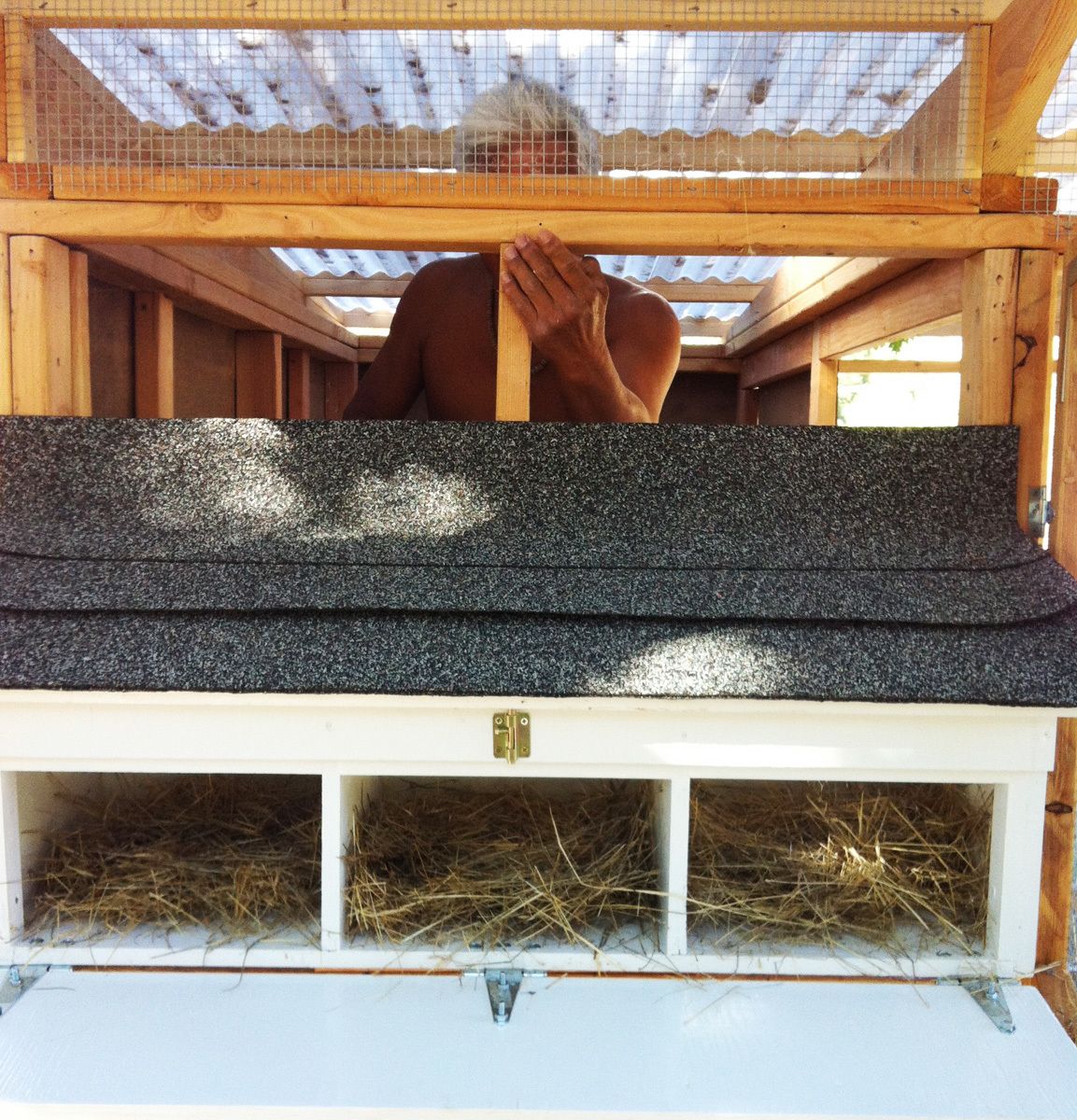 Quote: LOVE your set up!Very well planned and great ventilation. Nice of your friend to take the time to build it for you, his pride in his work shows. Like the way he finished the rafters and you'll love the external laying boxes. From what I can see of your design they should give you no problem choosing to lay in those boxes.![]()