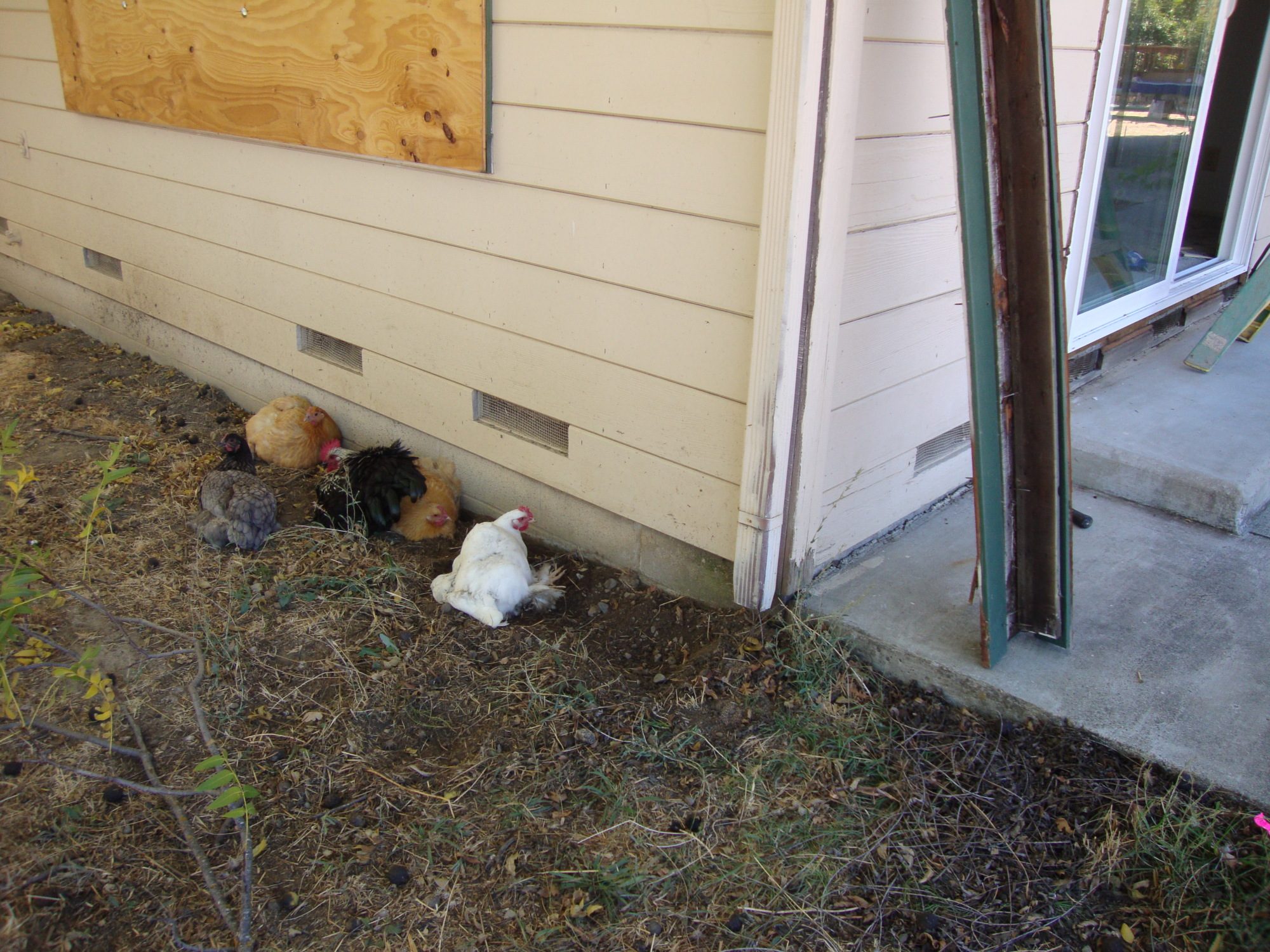 I do not know what it is about dust bathing but when chickens do it- I stop and watch. I can't help it. It is the funniest thing to me. Having not grown up around chickens - I find it rather charming. lol When they do it in groups - it kills me. SO funny!HA! yeah. The king Roo with his 4 ladies while the lesser Roos keep watch.![]()