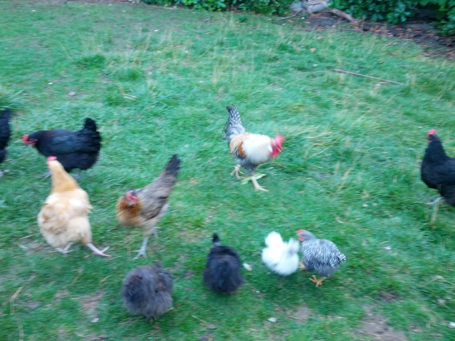 Orlando, the CL roo, escaped and on the lawn looking for large women. ( The marans laugh so hard when he dances around them)