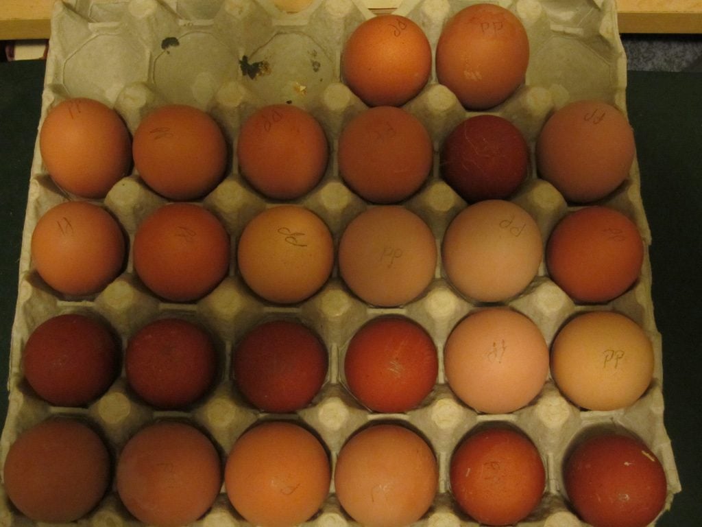 Depending on the rooster, the eggs laid by the hens in the light eggs could be dark. The darker colored eggs could have light egg layers.