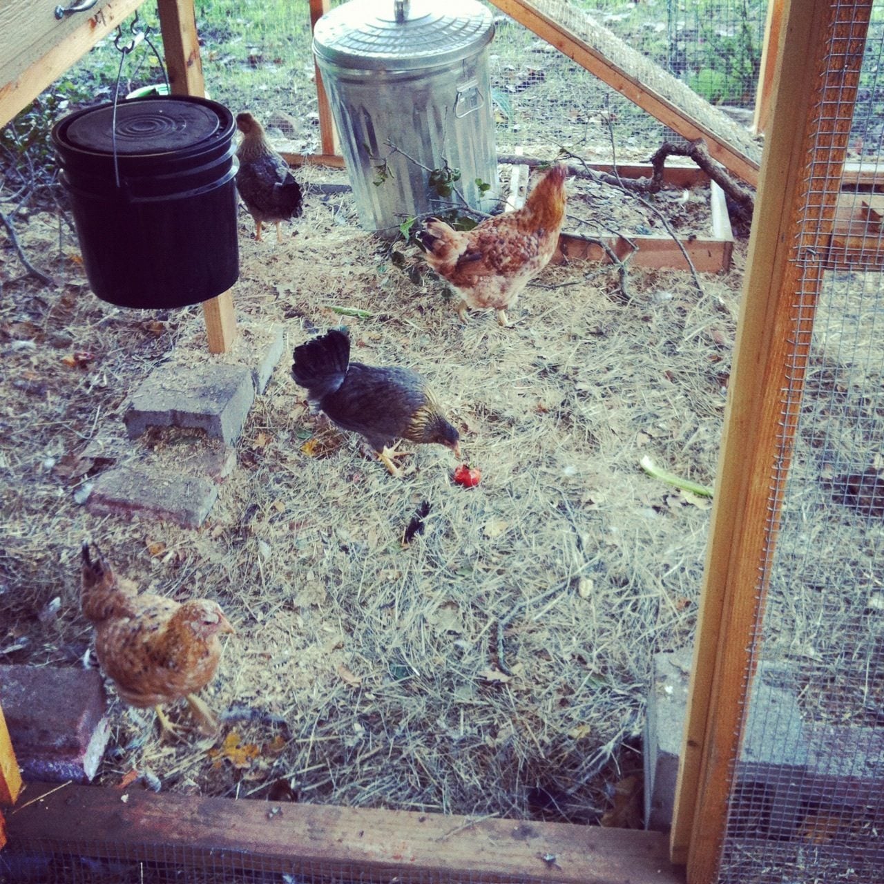 Amelia is my favorite. Probably to fast to get picked on much with those pene genes. please keep posting pic's the basque will probably be fine as they are super smart and she will find her wayso chilly these last few mornings! i'm ever-thankful for the woodstove that i splurged on last year -- it's keeping the cats and i warm and cozy. but it's nice to be home & able to let the flock out of their coop, so the big girls will pick on the newcomers less -- and i snapped a few pictures yesterday morning: