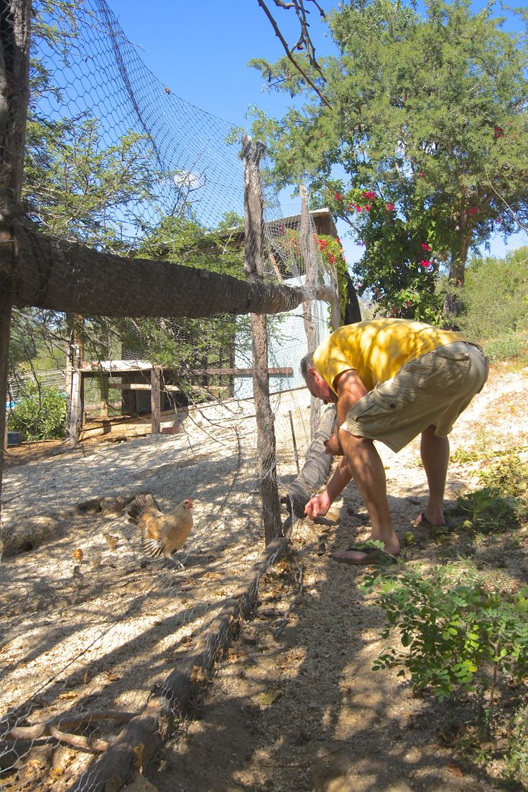 A week long cooking/eating/drinking adventure here in Cabo. We visited a ranch here in Cabo and of course were drawn to the chicken pen. We noticed that one of the chicks was on the outside of the pen, away from its momma. So Larry chased after the chick all the while momma hen is attacking Larry through the fencing! He finally catches the chick and returns it to it's momma! WHEW!