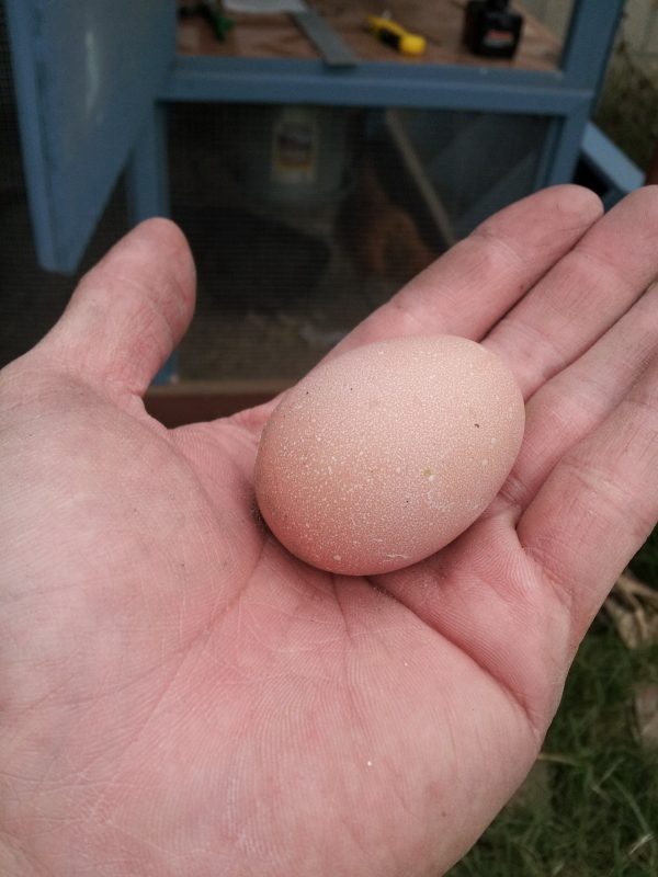 I know the excitement of founding the very first egg. If you going to let you chickens free range in the back yard later, they have plenty of space. It would be nice for them to have screened window on the wall for more ventilation in hot summer days so. Enjoy all the chicken fun now!