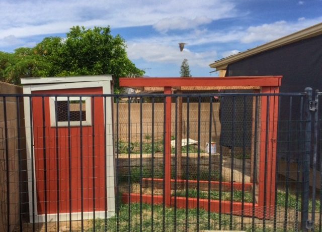 Here is the after (well, in progress) We added windows and vents for more air flow. The coop was in Orange County under a large tree and probably didn't need as much ventilation as we need here in our area which is significantly hotter. We had to shorten the yard so that it could fit where we wanted to put it. The hens will get lots of free range time, so I'm not sad about the yard being small. Still have to put the tin roof on for shade and attach the yard, but the paint job and new windows helped it!