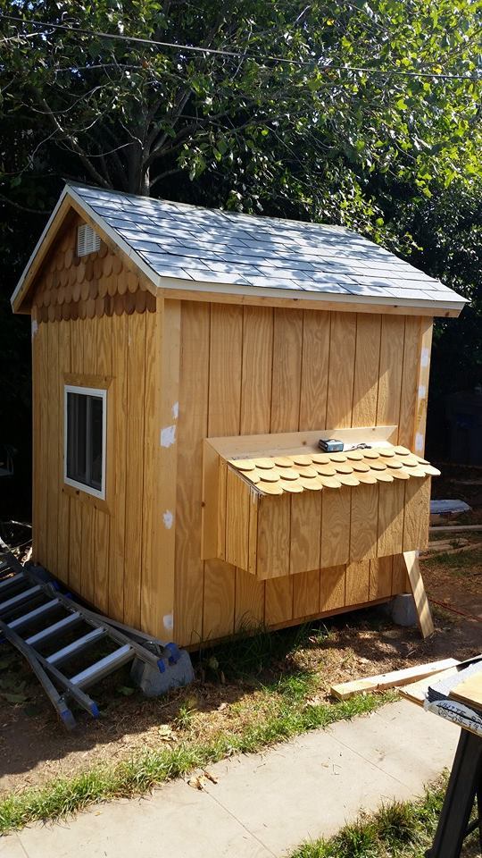 Hi. I'm new to the whole chicken thing. I got my chicks last month and they are now 5 weeks old. I just got them out of my bathroom (Thank goodness) and into their newly build coop. I still have to finish fencing the run, but they will be fine in the coop for a few more weeks. The coop I built is 6'X6' and I have 9 girls (all girls I hope!). I just need to finish painting the outside of it. My current flock consists of: 2 buff orpingtons, 2 lavender orpingtons, 2 australorps, 2 easter eggers, and a silver laced wyandotte. Things seem to be going fine so far. :-)