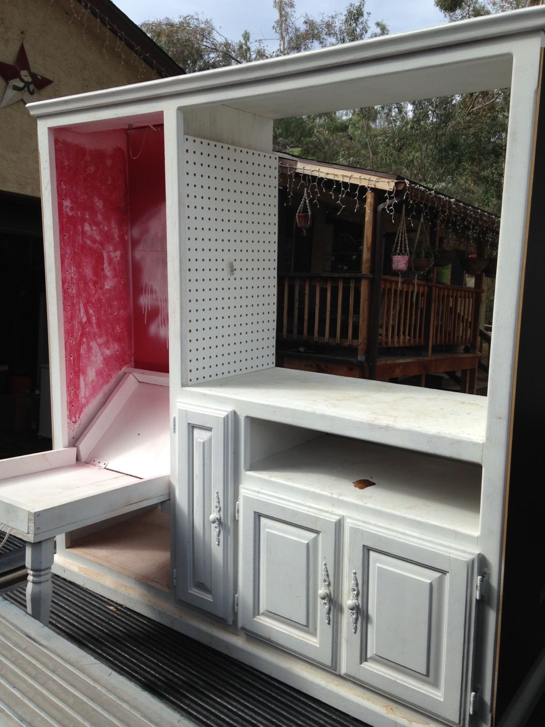 A couple of weeks ago I recycled this old entertainment center. This is what it looked like when I brought it home...