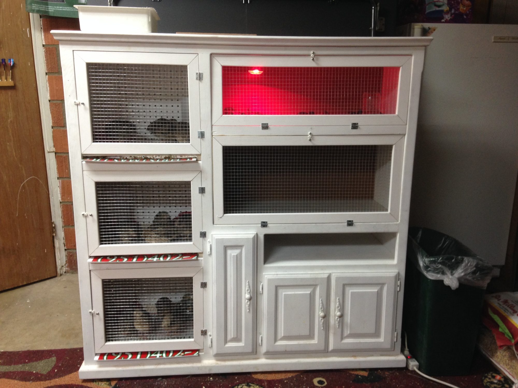 I used peg board backing for ventilation and a mesh floor so the birdies won't have to walk in the muck and poop trays for easy clean up.