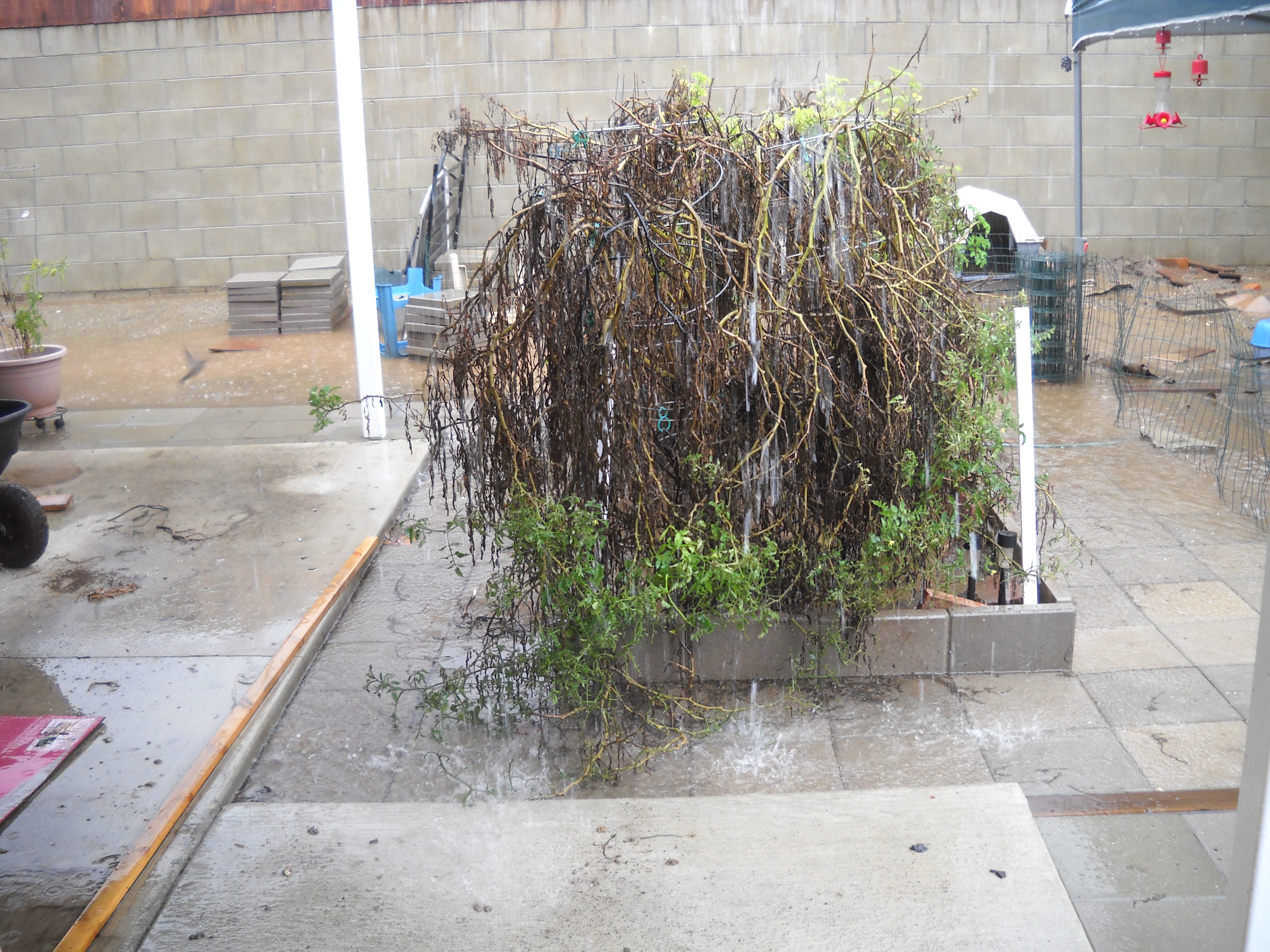 I live on a mesa surrounded by sloping ground SO I stayed very dry. My chickens live inside an 18ft square covered patio so they too are dry. I am SO HAPPY I went thru the extra work to make an OFF THE GROUND secure run with a shingled roof. Here are a few pics of my "work of art", and worth every drop of sweat I put into it. :love