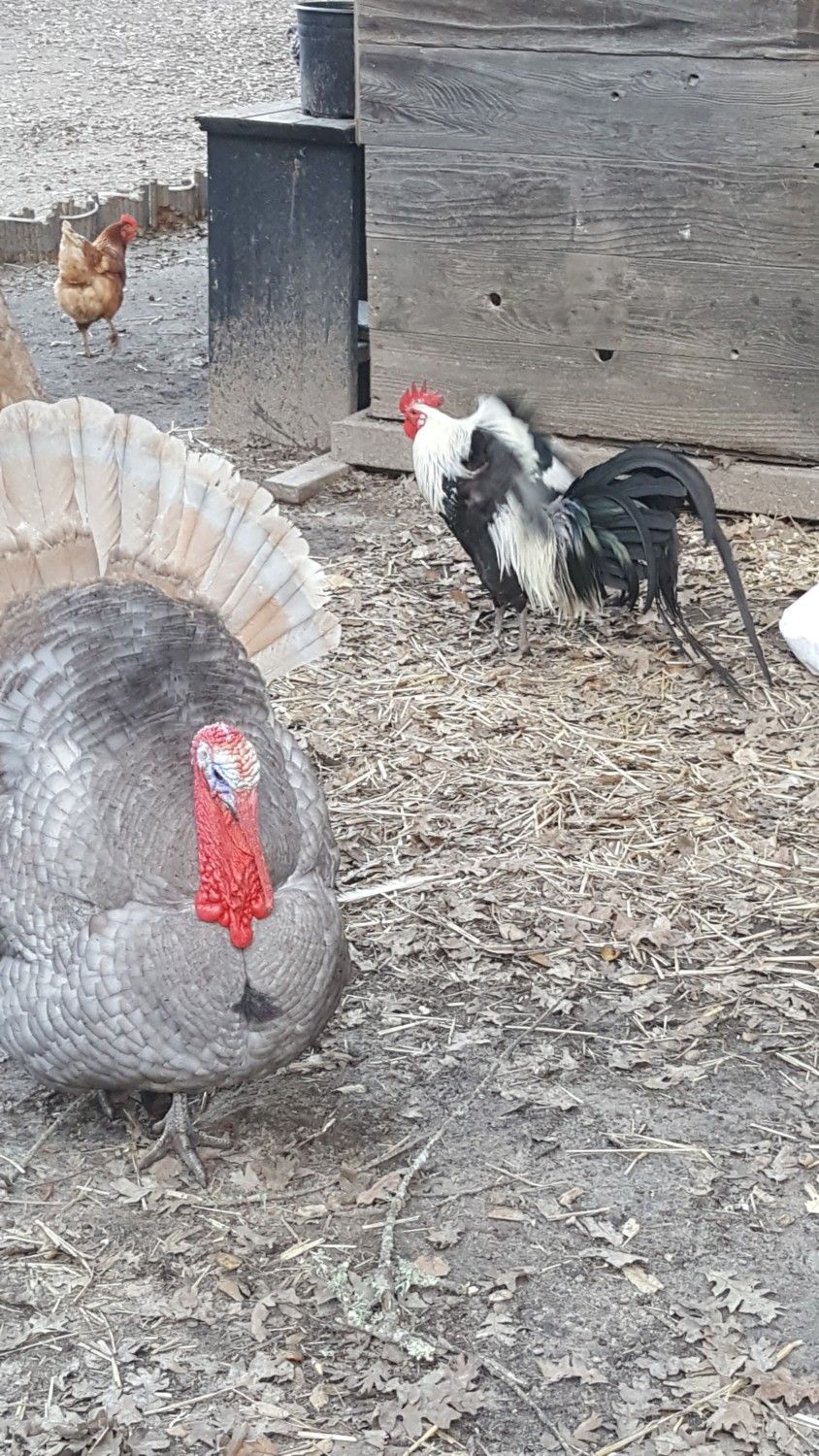 Your Tom is beautiful, by the way! Is he a blue slate mixed with something? That tail coloring is awesome! I want turkeys....and ducks and geese....
