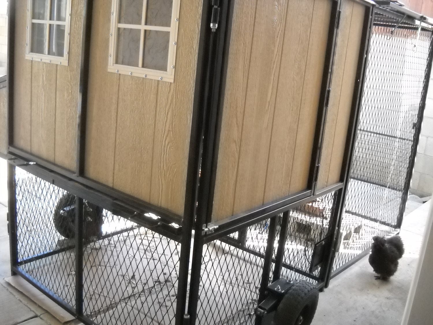 TY - The coop is so darn heavy we can't move it without the heavy-duty wheel package that lift off the ground when not in use. The only reason we got the wheels is when we need to move the coop for remodeling, painting the house, or to do repairs. The attached run detaches easily by removing large bolts and screws so that way just the coop needs to be rolled around. When we were remodeling the yard we had to move this coop around to 3 different locations while workers and equipment scurried about doing their work. Our backyard is very small so putting a stationary chicken pen away from our house into some large lot or pasture wasn't an option for us. We like the coop close to the kitchen sliding door so we can just walk out and gather eggs.