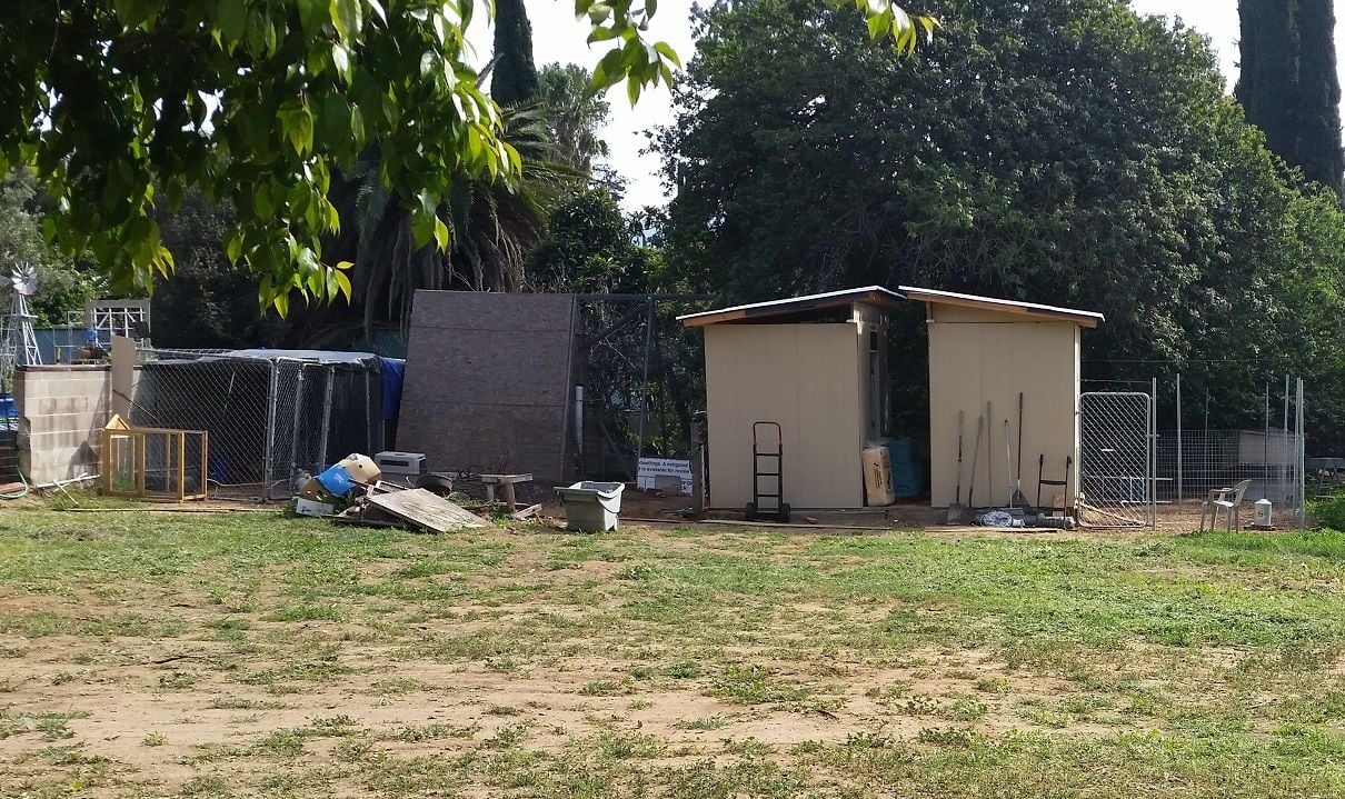 This was the coop for 5 years but we had to tarp it from sun and rain and wind. The chickens free-ranged and only used it for egg-laying and roosting for the night.